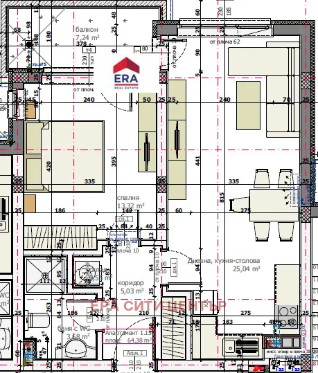 ЕРА Сити Център представя на вашето внимание двустаен апартамент в новострояща се сграда. Жилището се състои от всекидневна с кухненски бокс,спалня,баня с тоалетна,склад и тераса.