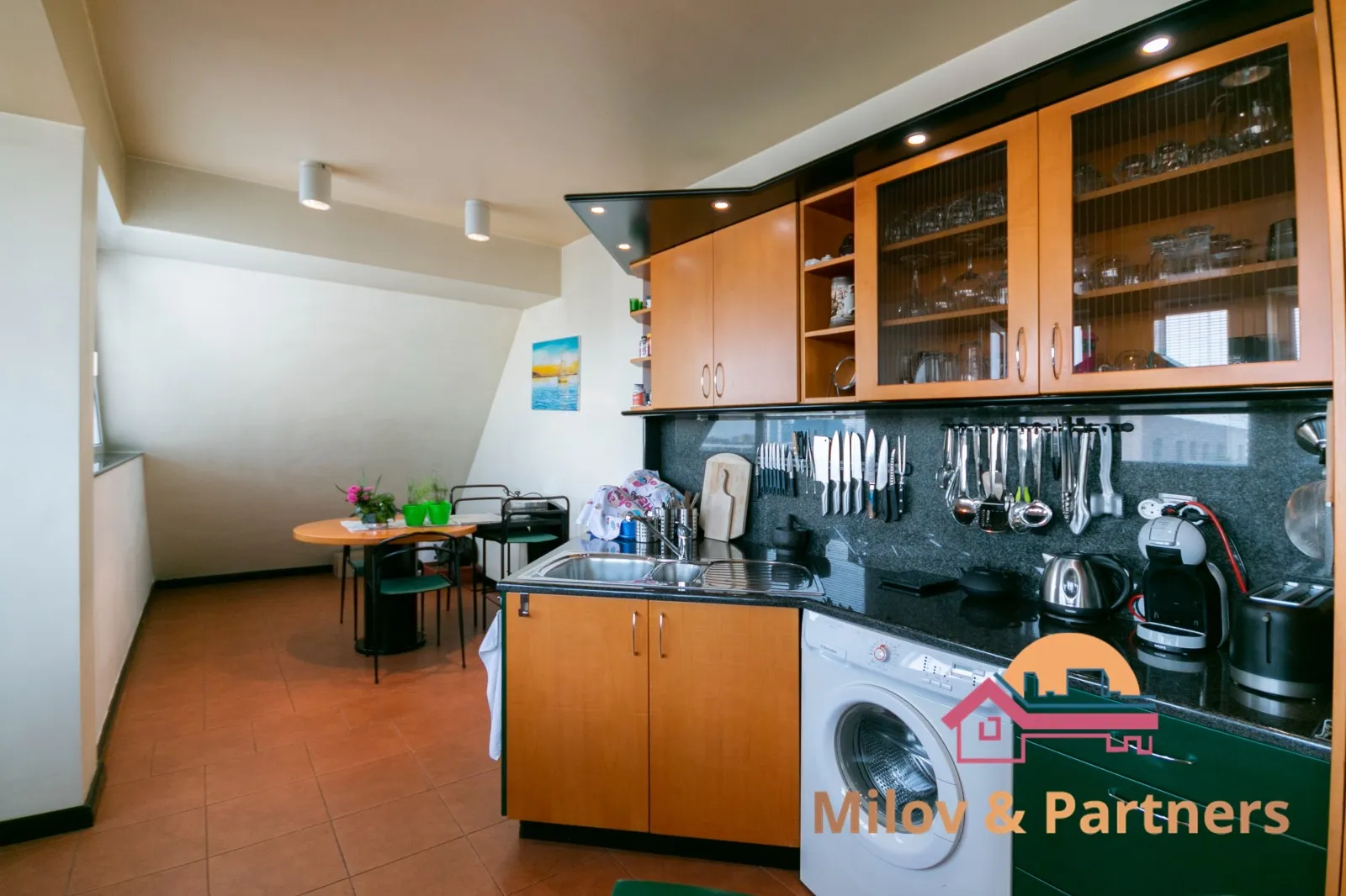 Апартамента е обзаведен по дизайнерски проект, като усещането, което дава е сравнимо с това на къща.