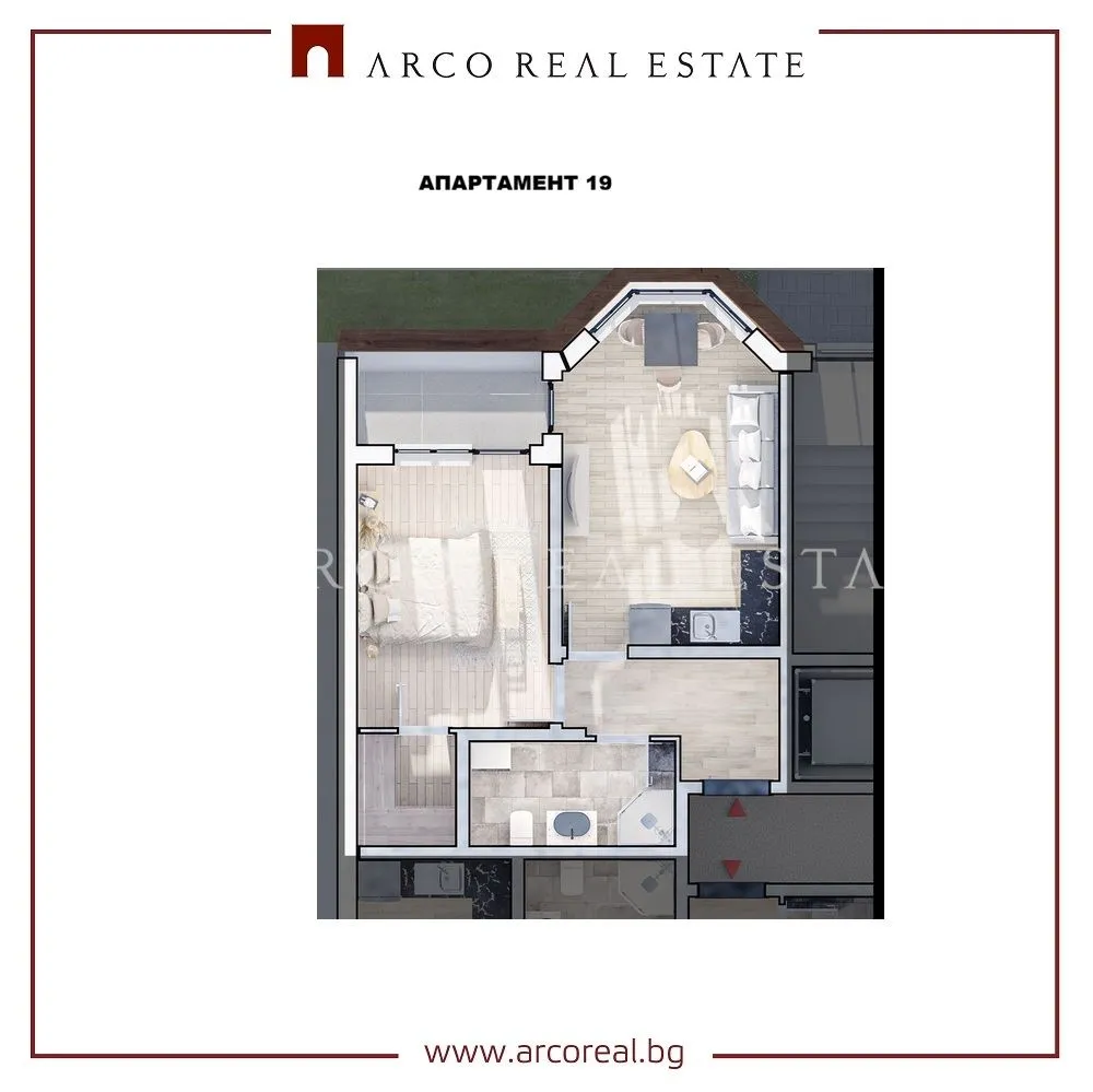 ARCO REAL ESTATE представя: Двустаен, апартамент в Нова сграда в начален етап на строеж в Люлин 10.Апартамент 19 е на ет.1-ви над гаражи от 6 със застроена площ 56.62 кв.м.Разпределение: Входно антре, дневна с кухненнски бокс / 17.20 кв.м./, спалня / 11.97 кв.м./, баня с тоалетна / 4.37кв.м./, тераса.Завършване на Апартаменти: Стени и тавани: турбозол, Под: циментова замазка, Входна врата – блиндирана, Врата към тераса външна и прозорци, дограма – пластмасова със стъклопакет,. Окабеляване и изводи за телефон, домофон, телевицзия, интернет.Сградата ще е на 6 жилищни етажа, сутерен с паркоместа, партер с гаражи и наземни паркоместа в двор.Ще бъде изградена - Стоманобетонова конструкция. Фундамент от монолитен стоманобетон, Зидария: вътрешни стени тухла, външни стени тухла.Общи части от сградата: стълбищна клетка с гранитогрес, стнени латекс.Покрив – топлоизолиран, 10 - год. гаранция.Дворното място: ограда на дворното място, монтирано градинско осветление, съгласно одобрените проектиЕтап на строителство: Започва 2025г. Завършва - 2027г.Схема на плащане: Два варианта: Първи - 25% на предварителен договор и 7 степенно разсрочване по време на строителството.Втори - 20% на предварителен договор и останалите 80% при АКТ 16 - оскъпяване с 12%.Местоположение: Люлин 10, тиха улица, зелени градинки, детска градина, училище, Билла. Комуникация: - до бул.СливницаАгенцията предоставя безпатна услуга - Съдействаме при ипотечно кредитиране на имота.За повече информация и огледи Йоланта Бикова 0895664570 , оферта 105971e-mail: Yolanta.petrova@arcoreal.bg Имейл yolanta.petrova@arcoreal.bgТелефон 0895 664 570