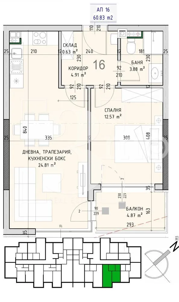 3mo Амалтея предлага за продажба двустаен тухлен апартамент на трети етаж, в новострояща се луксозна жилищна сграда в ж.к. Малинова долина, в близост до бул. Околовръстен път.РЗП на апартамента - 70кв.м. и ЗП 61кв.м. Разпределението на апартамента е както следва: просторен хол с кухненски бокс и трапезария , непреходна спалня , балкон, баня с тоалетна, склад.Апартаментът се издава на шпакловка и замазка с троен стъклопакет PVC дограма в цвят антрацид, висок клас блиндирана входна врата с модерен дизайн в цвят сив дъб. . Сградата има луксозни общи части и асансьор от висок клас с марка ORONA. Има видео наблюдение и контрол на достъп.Сградата разполага с общо 39 апартамента, всеки от които е със светли и функционални помещения. Има възможност за покупка на гараж или паркомясто. Към сградата ще има богато озеленена градина с обособени зони за отдих, детска площадка и заграждение за кучета.Кварталът се намира в южната част на София, в подножието на планината. Сградите са с отлично местоположение. В непосредствена близост са разположени молове, хипермаркети, детска градина. Налична е бърза транспортна връзка с главни столични булеварди.Етап на строителство - Разрешение за строеж .Цената на имота е съобразена със схемата на плащане.За повече информация се обадете на тел: 0889984448Получете най-добрата оферта за ипотечен кредит с Агенция ТРИМО и лицензиран кредитен посредник КРЕДИТ НАВИГАТОР. Услугата е безплатна.