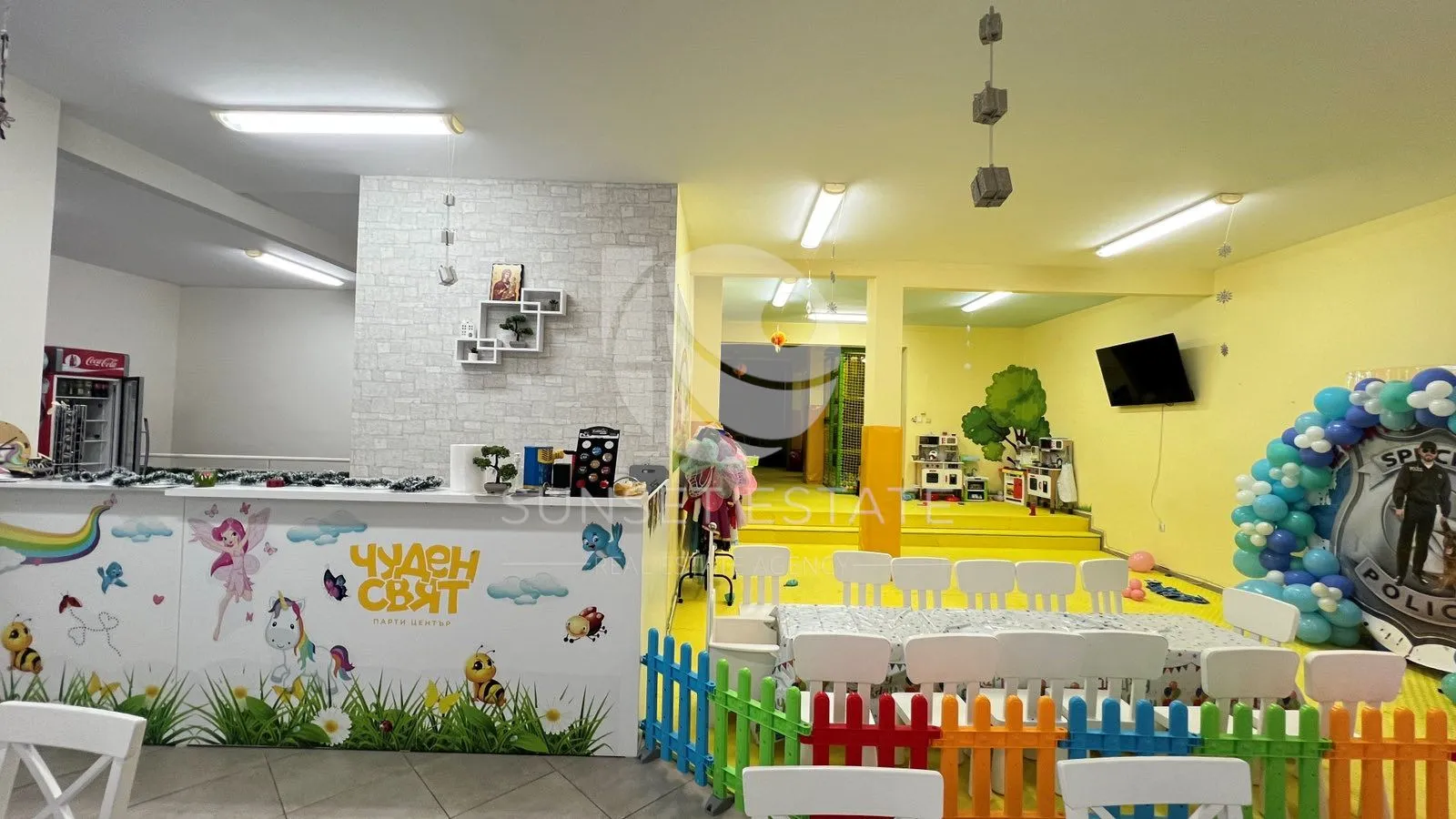 Сънсет Естейт предлага за продажба търговски обект с голямо лице към улицаОбекта е просторен с отлична видимост и голямо лице към улица, подходящ за разнообразни бизнес дейности. Имотът е функционален, с високи тавани и възможност за различни преустройства според нуждите на бъдещия собственик.Разпределение: голяма търговска зала със санитарен възел и складово помещение с площ 28 кв.м., разположено в сутерена, до което има вътрешна стълба.Към момента имотът функционира като детски парти център, като цената включва цялото налично оборудване. При желание за закупуване без оборудването, цената е 360 000 евро. Характеристики:☑️Търговска площ: 153 кв.м.☑️Складово помещение (сутерен): 28 кв.м.☑️Обща площ: 181 кв.м.☑️Санитарен възел☑️Високи тавани☑️Голямо лице към улицаПодходящ за: Офис; Лекарски и стоматологични кабинети; Клиники; Детски център; Търговска или обслужваща дейност✨ Имот с отлична локация, видимост и гъвкавост за различни бизнес концепции.Оферта №: 490📞 За повече информация и огледи: свържете се с нас на посочения телефон.Осигуряваме пълно съдействие за банков кредит, бързо и коректно, с възможност за избор между водещи банки.🌐 Разгледайте и още актуални имоти на: www.sunsetestate.bg