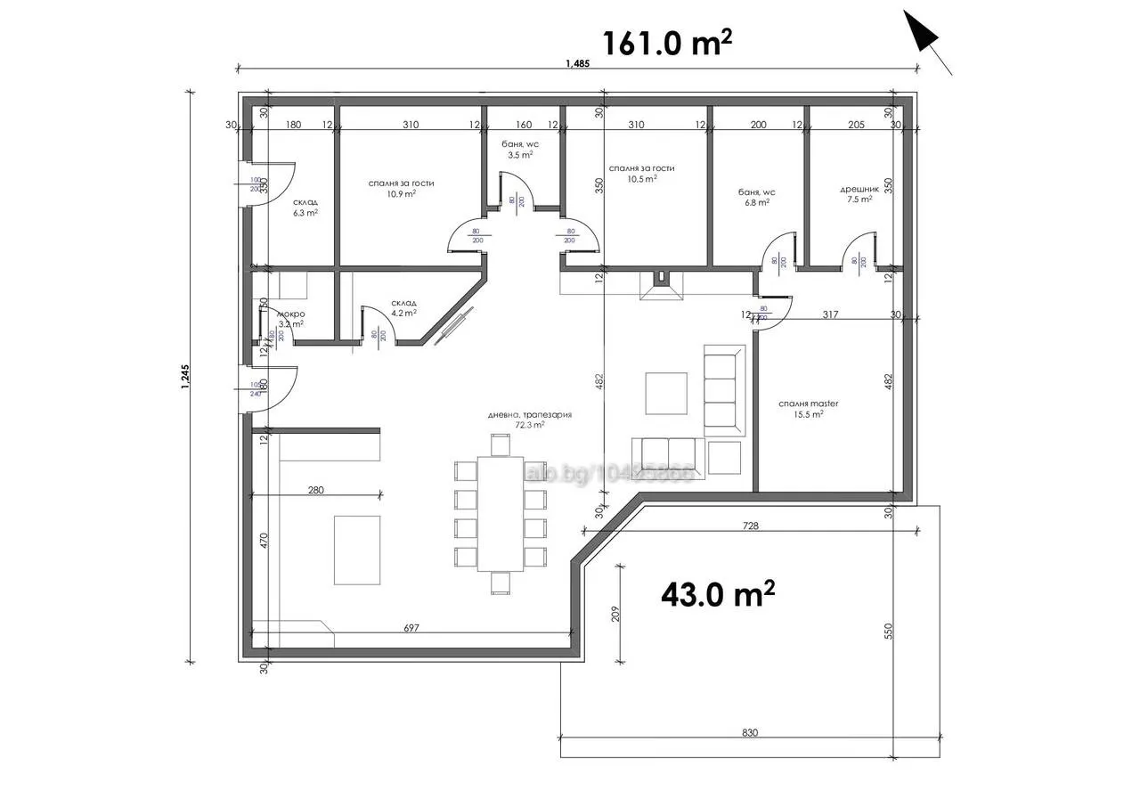 РАПРЕДЕЛЕНИЕ: Разполага с площ от 560 кв.м. с площ на двора 300 кв.м.