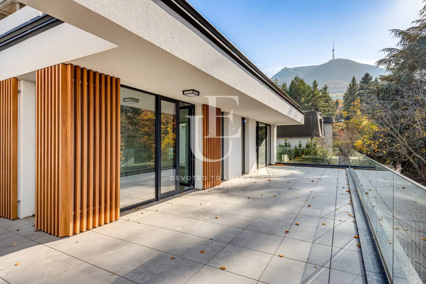 Unique Estates представя ексклузивно за продажба уникален тристаен апартамент, разположен на последния етаж в престижна сграда, носител на приза „Сграда на годината“ 2024 г. Този имот съчетава архитектурното съвършенство с несравнима панорама към града и планината, като същевременно предоставя пълно уединение далеч от градския шум. Благодарение на огромните френски прозорци апартаментът е облян в естествена светлина. Сградата разполага с луксозна рецепция и стилни фоайета. Концепцията е дело на водещото студио VIArchitects. Разпределение:дневна част с трапезария и кухня, родителска спалня със собствена баня, втора спалня с баня, панорамна тераса Предимства:Панорамен апартамент в престижна нова сградаКонтролиран достъпГолямо паркомясто на допълнителна ценаЦената е без включен ДДС (Ref. ID:28365)