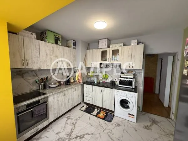 Агенция АДРЕС недвижими имоти предлага за продажба тристаен апартамент в централната зона на кв. Струмско. Апартаментът е с площ от 84 кв.м. и се намира на пети жилищен етаж от осеметажен саниран панелен блок с действащ асансьор и контролиран достъп. Състои се от входно антре,баня с WC, отделно WC,кухня с усвоена тераса,дневна(хол) с излаз на открита тераса с южно изложение и две спални. Жилището разполага и с мазе. Апартаментът се продава с основното оборудване от електроуреди (климатик,готварска печка,абсорбатор,микровълнова фурна,пералня и мебели(спален комплект,гардероб,портманто,холни секции и др.) Жилището е след основен ремонт. Подът е с ламинат и теракот,външните стени на стаите са с вътрешна изолация,таванът е с добра топло и шумоизолация ,боядисани стени и декоративна мазилка,подменени са Ел и Вик инсталациите, нова PVC дограма.Ново е и кухненското обзавеждане. Апартаментът се продава с обзавеждането,но може да се договори цена и без обзавеждането. Тристаен апартамент в централната зона на кв. Струмско,над маг. ,,Стоми", близо до детската градина,училището,маг. Мосю Бриколаж,автобусни спирки и др. Апартаментът се намира в панелен санираносеметажен блок построен през 80-те години. Апартаментът е с югозападно изложение,в саниран блок и е с много удобна локация. Обади се сега и цитирай този код Z-677950