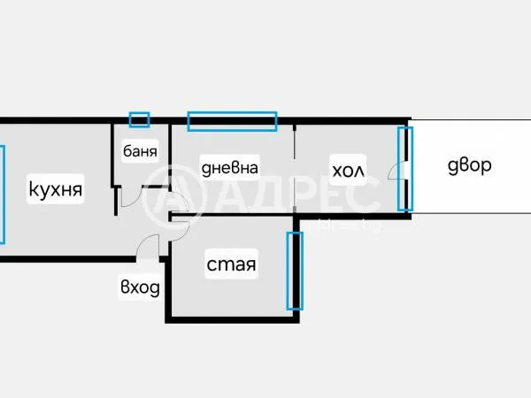 Първи етаж от двуетажна къща за продажба в кв.Триъгълника в добро състояние. Състои се от голяма кухня, самостоятелна стая, голям хол със светъл вестибюл, тераса, баня с WC. Kъм имота има 25 м2 мазе и втора баня с WC