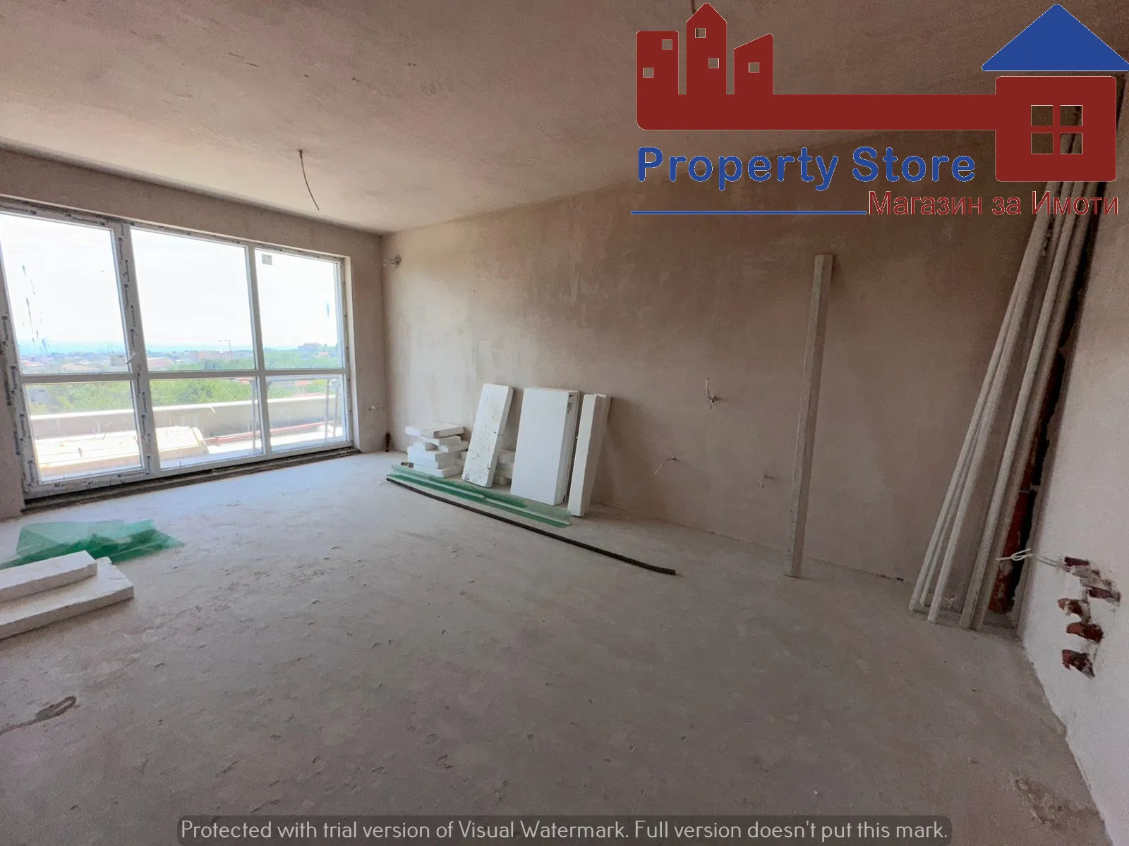 Състояние: Жилището ще се завърши по БДС - шпакловка на стени и тавани, подова замазка във всички стаи, PVC дограма , външна топлоизолация 10см., входна блиндирана врата и с възможност за завършване до ключ при желание от купувача.
