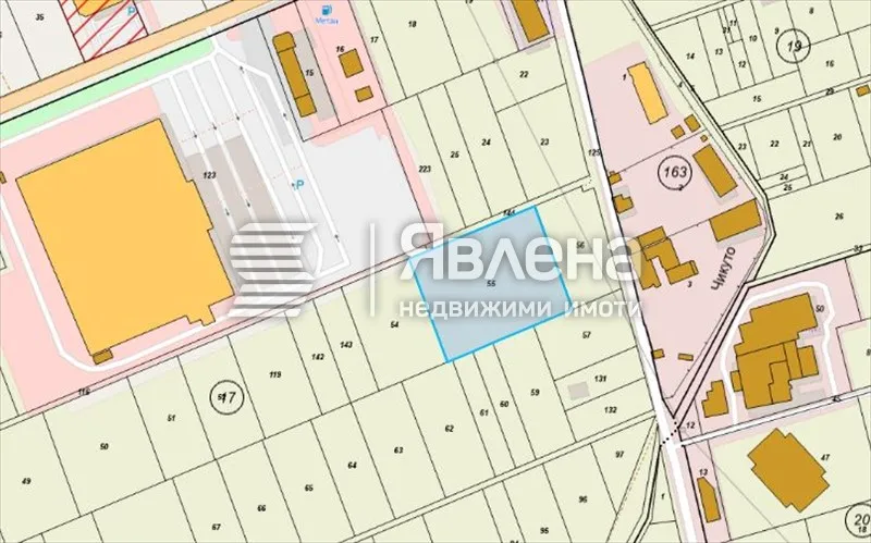 Явлена Благоевград предлага за продажба земеделска земя, находяща се в землището на Благоевград, местност „ЧИКУТО-Ш.16“. Имотът се намира непосредствено до магазин МЕТРО, което го прави изключително удобен за промишлено застрояване, ТИР паркинг и др. Основни характеристики: • Локация: Землище на Благоевград, местност „ЧИКУТО-Ш.16“. • Площ: 5 499 кв.м • Релеф: Равнинен • Достъп: Лице на път без трайна настилка. Предимства на имота: • Многофункционалност: Имотът е подходящ както за складова база и хале, ТИР паркинг. • Отлична локация: Намира се в район с лесен достъп до главни пътни артерии и инфраструктура. • Развита зона: В района има изградени промишлени сгради, складове и халета, което допълнително увеличава потенциала за развитие. • Инвестиционен потенциал: Зоната е перспективна и бързо развиваща се, което прави този имот атрактивна инвестиция. Не пропускайте възможността да инвестирате в този прекрасен имот, разположен в перспективен и развиващ се район. За повече информация и огледи, моля свържете се с нас.(http://www.yavlena.com/162876) ID:Z-162876