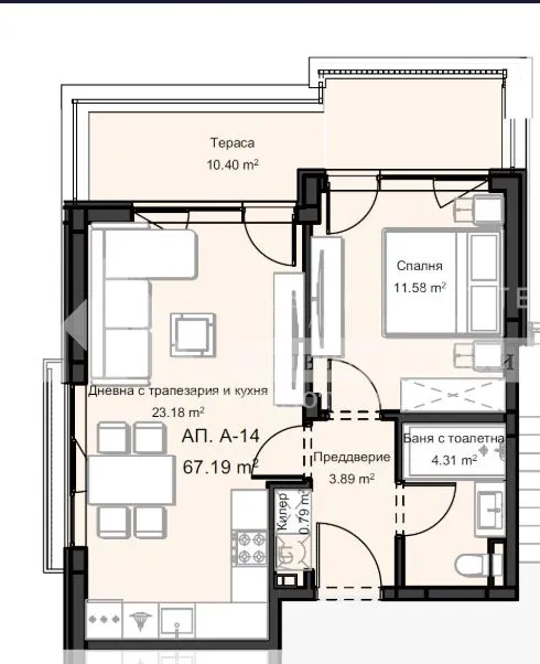 Пловдив Остромила Двустаен апартамент