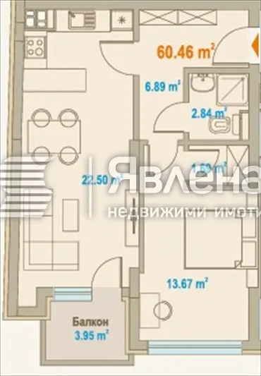 До основни пътни артерии, градски транспорт и две метростанции! На пешеходно разстояние от центъра на столицата. Предлагаме за продажба изключително стилен и функционален двустаен апартамент (ап. 2) в модерна и елегантна жилищна сграда, от висок клас, разположена на ключова и комуникативна локация в широк център на София. Сградата впечатлява с елегантна архитектура, изчистени линии и висококачествени материали. В строеж на ранен етап. С най-иновативни материали, вкючително тухли Wienerberger и висок клас PVC. Гарантирана отлична енергоефективност на сградата, посредством най-висок клас дограми, фасадни облицовки и топлоизолации от водещи производители, осигурява ниски сметки на отопление и електривеството. Сградата се отличава със стилна и съвременна визия, като хармонизира с градската среда. Външното LED осветление подчертава формите и създава усещане за престиж и сигурност. Общите части са луксозно изпълнени, входът е представителен, а околността – тиха и добре поддържана. Намира се в близост до търговски вериги, училища, детски градини, здравни заведения, ресторанти и кафенета, магазини, супермаркети и мол София. Параметри на апартамента: Обща (чиста) площ: 60.46 m². С общи части: 83,54m². Етаж: 2ри в модерна многоетажна сграда от 14 етажа. Крайна цена: 199 800 евро. Цената включва ДДС. Изложение: на запад, с отлично естествено осветление през целия ден. Балкон: 3.95 m² – идеален за сутрешно кафе или малка градина с растения. Разпределение: Просторна дневна с кухненски бокс – 22.50 m². Отворено пространство, подходящо за кът за почивка, трапезария и модерна кухня. Големите прозорци осигуряват светлина и усещане за простор. Спалня – 13.67 m² Комфортна и добре пропорционирана стая, подходяща за голямо легло и гардероб. Антре – 6.89 m². С възможност за вградени шкафове и удобно съхранение. Баня – 2.84 m². Компактна и функционална, с възможност за поставяне на душ кабина. Склад/ниша – 1.69 m². Идеално място за пералня, сушилня или допълнително съхранение. Предимства на имота: Нова и висококачествена сграда. Модерен дизайн и първокласни материали. Светъл и функционален апартамент с оптимално разпределение. Топ локация, подходяща както за живеене, така и за инвестиция. Предлагат се и довършителни работи за привеждане на имота до ключ, с доплащане. Възможно е и покупката на паркомясто (30 000-35 000 евро) или гараж (45 000 евро). За оглед и повече информация, свържете се с Надежда Цолова.(http://www.yavlena.com/164964) ID:Z-164964