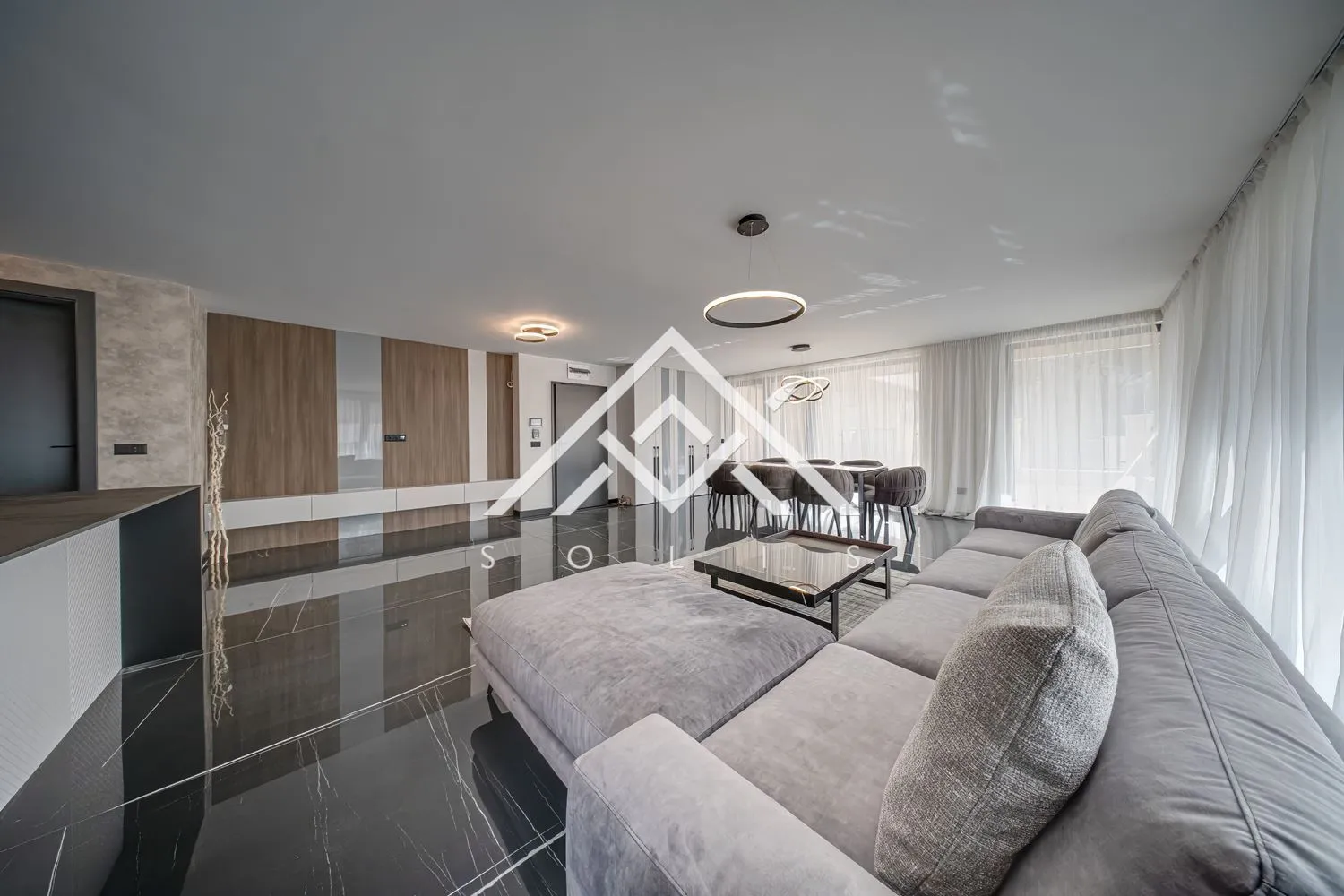 AvaSOLIS Real Estate & Investment предлага ексклузивно напълно обзаведен апартамент в сграда „Урано“, разположена в кв. Драгалевци, в непосредствена близост до Britanica Park School. Имотът е част от сграда в премиум сегмента с десет жилищни единици, проектирана с фокус върху просторни жилища, качествено изпълнение и добре подредена среда. Локацията съчетава престижен жилищен район, бърз достъп до града и усещане за ясно организирано ежедневно удобство.Апартаментът е ситуиран на партерно ниво и е с обща площ от 217.03 кв.м, включваща 168.94 кв.м застроена площ, 21.96 кв.м общи части и 26.13 кв.м покрита тераса. Разпределението следва същата успешна логика като при първия реализиран имот в сградата, тук в огледален вариант и с различна интериорна концепция. Центърът на жилището е впечатляваща дневна с кухня и трапезария с площ от 78 кв.м. Пространството позволява пълноценна всекидневна зона, голяма трапезария и кухня с остров, решени по начин, който носи мащаб и лекота в ежедневието. Изложението е юг, запад и север, а покритата тераса естествено продължава дневната и дава още една пълноценна зона за ползване.Жилището разполага с три спални, две бани и сервизно помещение, организирани с ясна вътрешна логика и добър ритъм между общите и по-интимните части на дома. Интериорът е завършен с внимание към материала, пропорцията и комфорта. Апартаментът се предлага напълно обзаведен и е готов за незабавно нанасяне. Това го прави силен избор както за собствено ползване, така и за покупка с инвестиционна цел и последващо отдаване под наем.Сграда „Урано“ е въведена в експлоатация през 2025 г. и е изпълнена с висок клас материали и системи. Зидариите са с тухли Wienerberger. Фасадата е вентилируема, с 10 см каменна вата, мембрани и естествен камък варовик с дебелина 3 см. Дограмата е 8 камерна с троен стъклопакет. Терасите са изпълнени със студоустойчив гранитогрес с дебелина 2 см, положен върху система с регулируеми опори. Общите части са завършени с естествен камък варовик, италианска декоративна мазилка, широкоформатни керамични плочи и тавани с HPL дървесни плоскости в зоната на входа. Отоплението е подово на газ с котли Viessmann, Германия.Интериорите в сградата са разработени индивидуално за всеки апартамент. Използвани са широкоформатен гранитогрес от Италия, интериорни бои San Marco и оборудване Roca, Испания. Кухните, гардеробите, облицовките и шкафовете за бани са изпълнени по самостоятелен проект, а масите и столовете са внос от Италия. Всеки имот в „Урано“ носи собствен характер, а общото между тях е високото ниво на изпълнение, добрият архитектурен баланс и усещането за завършен дом.Сградата предлага широки паркоместа и гаражи, ограничен брой съседи и жилищна среда с ясно подбран стандарт. Това е имот за купувач, който търси готово решение в Драгалевци, с реален мащаб, качествен интериор и силна позиция в премиум сегмента.