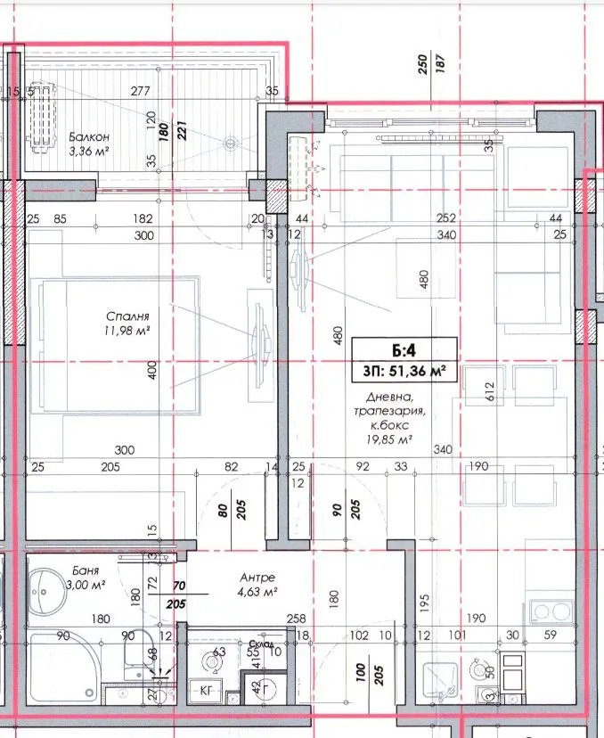 Чиста жилищна площ: 51,36 кв.м