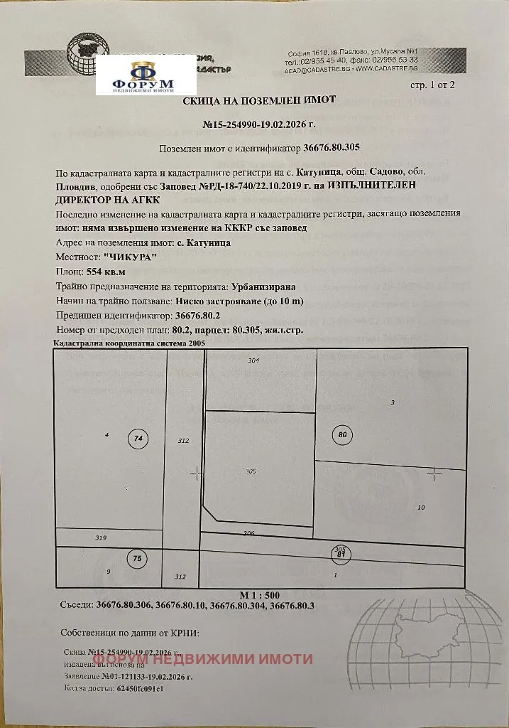 Агенция Форум недвижими имоти, Ви предлага УПИ в с.Катуница за жилищно строителство. Имотът е на два пътя и е срещу започващото изграждане на вилна зона Катуница. До мястото продаваме идентичен имот . При желание двата имота могат да бъдат закупени и заедно