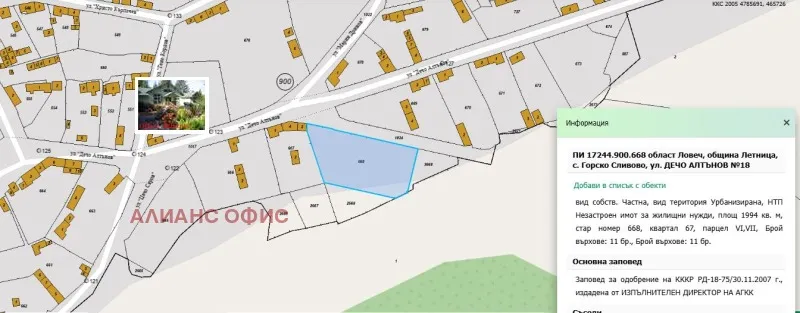 Дворно място със 70 метра лице на улица Дечо Алтънов в южната част на селото до дъбова гора и на 200 метра от река Ломя. Парцелът е южен, слънчев, панорамен и равен. Районът е живописен и има много забележителности - Крушунски водопади, множество пещери - Гарваница, Деветашка и т.н. Идеален за къща/къщи или хотел. Ток и вода на граница. Селото се намира в североизточната част на Деветашкото плато на 30 км от град Ловеч и на 10 км от гр. Летница.За контакти: Димитров, тел.: 0894/681943