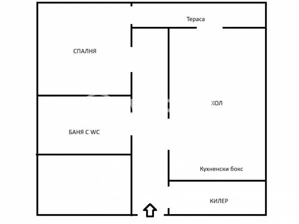 Двустаен апартамент със следното разпределение: коридор, килер, хол с кухня, остъклена тераса, спалня, баня с тоалетна. В жилището е направен частичен ремонт като са сменени дограмата, вертикални щрангове, алуминиеви радиатори, ламинат в стаите. Към апартамента има мазе.