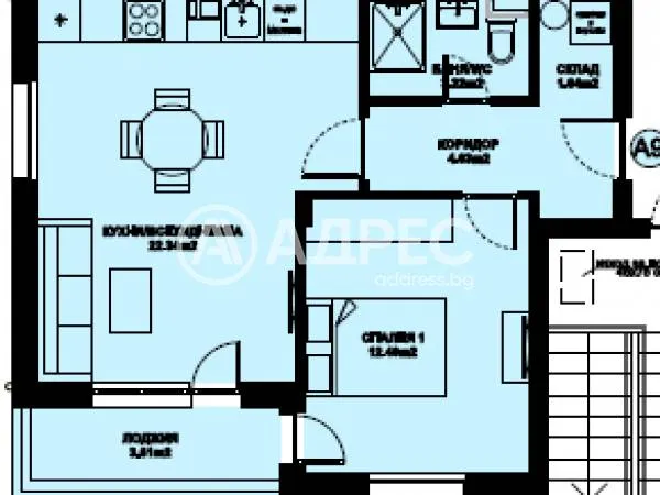 Агенция за недвижими имоти Адрес има удоволствието да Ви представи Нов проект в кв. Изгрев. Сградата се намира в затворен комплекс с ограда и контрол на достъпа. Сградата е на 4 нива: подземен паркинг, в който са рзположени и мазетата и три жилищни етажа. Рaйонът е тих и спокоен. Наблизо е бул."Пейо Яворов",осигуряващ достъп до магазини,кафета,спирки на градския транспорт,детска ясла,детска градина,VIII ОУ,плувен басейн. Предлаганият апартамент А9 на трети последен етаж с чиста площ от 56,24 кв.м / 59,54кв.м с общи части / и има следното разположение: антре,дневна с кухненски бокс,спалня,килер,баня с тоалетна и тераса. Към апартамента принадлежи и мазе. Степен на завършеност : подова замазка,положена фина мазилка на стените и таваните, ВиК-до тапа, Ел-до точка, PVC дограма, външна топлоизолация,монтирана входна врата,отлично завършени общи части. Допълнително може да бъдат закупени паркоместа и гаражи в подземния паркинг на сградата. Възможност за гъвкава схема на плащане,според степента на завършеност! За повече информация относно цени и квадратури,може да се обадите на посечените телефони. Предлагаме на всички заинтересовани клиенти безплатно съдействие при кандидастване за ипотечен и потребителски кредит! Обади се сега и цитирай този код Z-674156