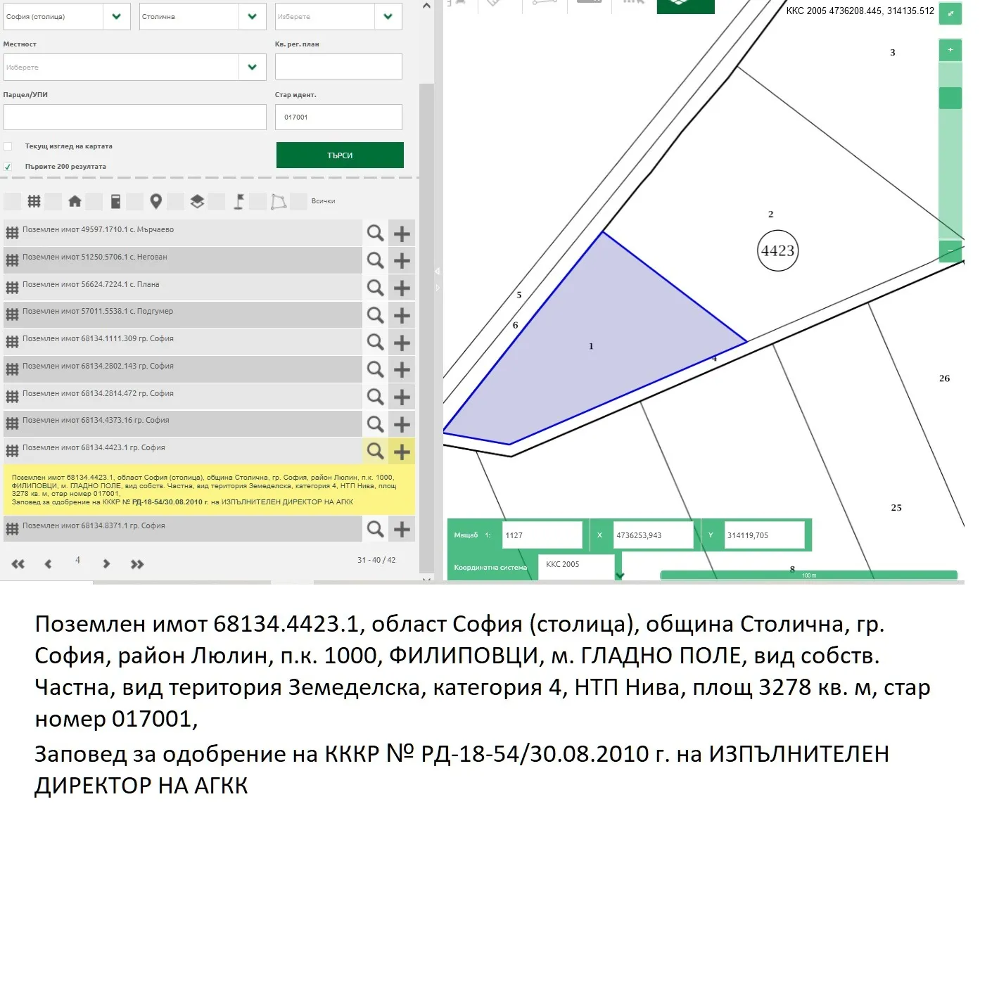 Агенция СкалаДи предлага за продажба Поземлен имот район Люлин, ФИЛИПОВЦИ, м.Гладно поле- 3278 кв.м. Земеделска земя ,устройствена зона -Ссб. Равен.