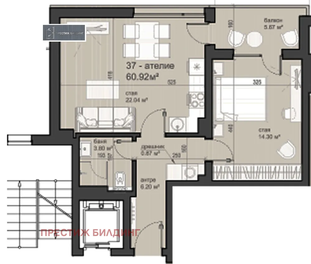София Люлин 6 Двустаен апартамент