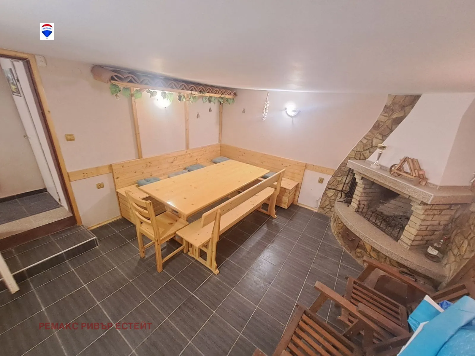 В бечовото помещение е направена уютна механа с камина, голяма дървена маса и пейки. Подът е с теракот. На стълбишето към него има помещение за съхранение на дърва. Прозорци и почти всички врати - ПВЦ