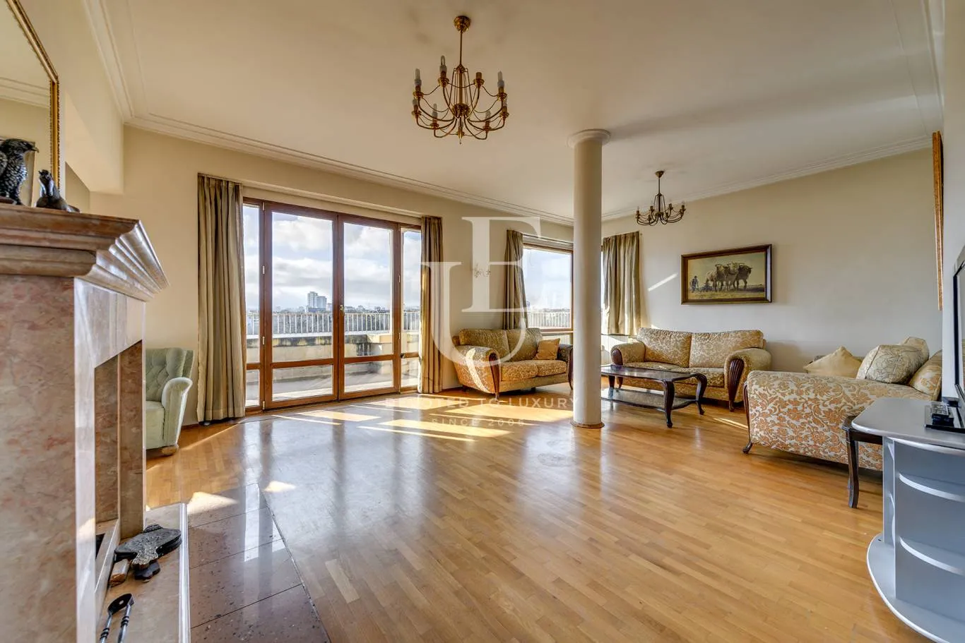 Unique Estates има удоволствието да Ви предложи един изключителен имот за продажба - аристократичен пентхаус с просторна тераса и невероятни гледки към Княжеската градина, историческия център на София, както и планината Витоша. Имотът е разположен на седми етаж в класическа сграда с отлично поддържани общи части и асансьор. Разпределение:Входно антре, просторна дневна и трапезария с камина (възможност за обособяване на трета спалня), две спални, много голяма баня с тоалетна, отделна тоалетна, отделна кухня, дрешник, покрита тераса (веранда). Предимства:Отлично местоположениеПанорамни гледкиПросторна терасаСграда с асансьорДве действащи камини (Ref. ID:28287)