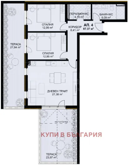 - Дограмата е в сив цвят с профили GEALAN - шест-камерна, енерджи стъкла