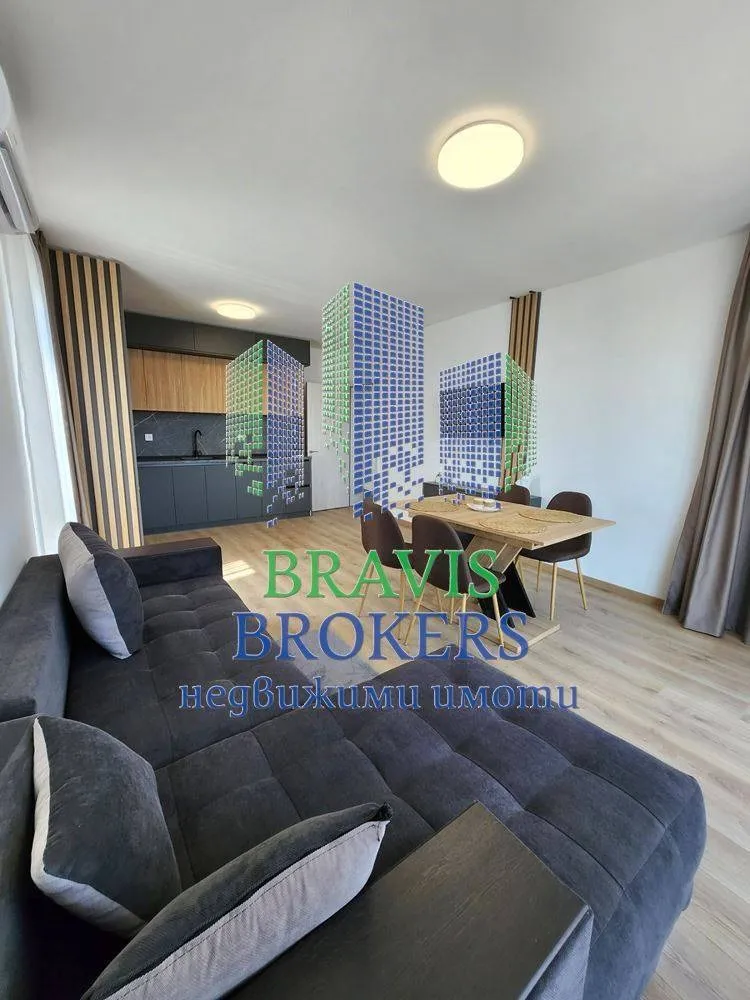 Имотът представлява : Входно антре, просторна и слънчева всекидневна с напълно оборудвана кухненска част, мека мебел и трапезна маса;две функционални спални, комбинирана баня с тоалет, панорамна тераса. Жилището е разположено на втори среден етаж в нова модерна жилищна сграда, с правилни форми на стаите.