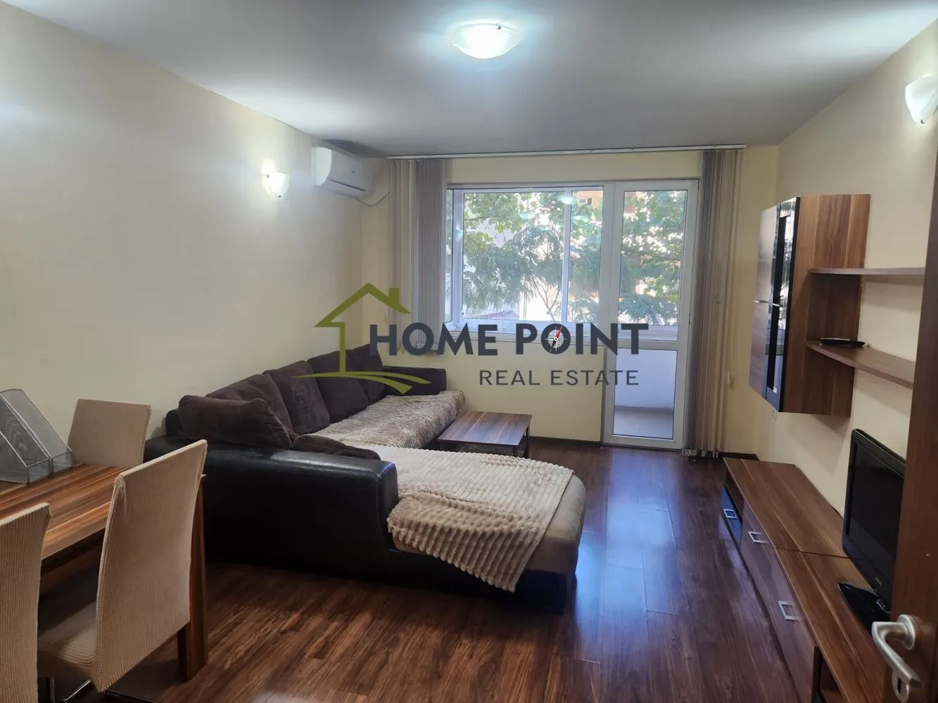 ХОУМ ПОЙНТ предлга практичен двустаен с отлична локация в кв. Акация - Велико Търново. Апартаментът е обзаведен с всичко необходимо за живеене. Разположен е на първи жилищен етаж от 5. Състои се от антре, дневна с кухненски тракт, спалня, тераса и смесено санитарно помещение.