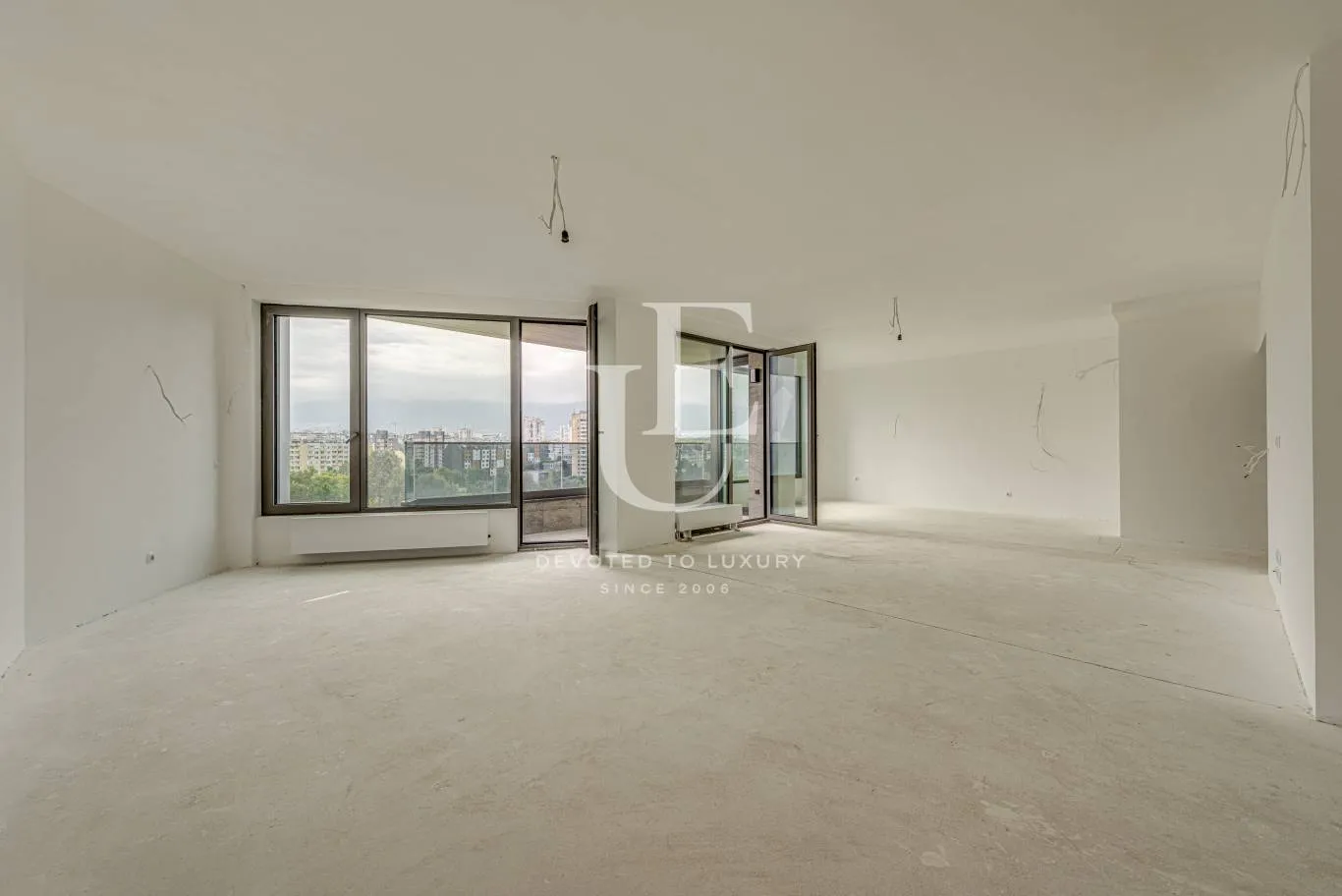 Апартаментът се продава на шпакловка и замазка, разполага с площ от 245 кв.м. и включва входно антре, просторна дневна, отделна кухня с трапезария, две спални с гардеробни и бани, както и трета спалня - гардеробна и самостоятелно перално помещение.