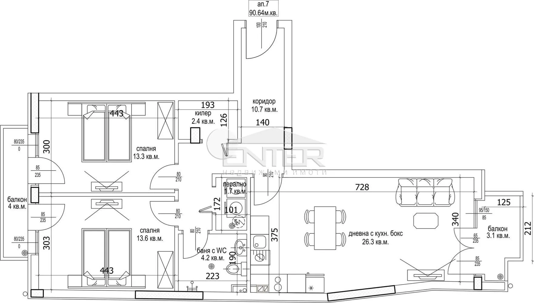ЕНТЕР ИМОТИ предлага за продажба тристаен апартамент в начален етап на строителство на бутикова сграда с луксозни общи части и модерна архитектура.Разпределение : коридор, дневна с кухненска част и излаз на балкон, две спални с излаз на обща тераса, килер, перално помещение и баня с тоалетна. Изложение юг - североизток, без преход. Сградата е ситуирана в Цветен квартал в близост до детска градина, училище, магазини, спирки на обществения транспорт.Сградата се характеризира със съвременна архитектура, луксозни общи части, топло и шумоизолация на сградата. Утвърден строител, функционално разпределение на жилищната площ. Апартаментът се предлага завършен по БДС, по желание на клиента може да се завърши до ключ. Има възможност за закупуване на паркомясто. В сградата се предлагат и други двустайни и тристайни апартаменти.