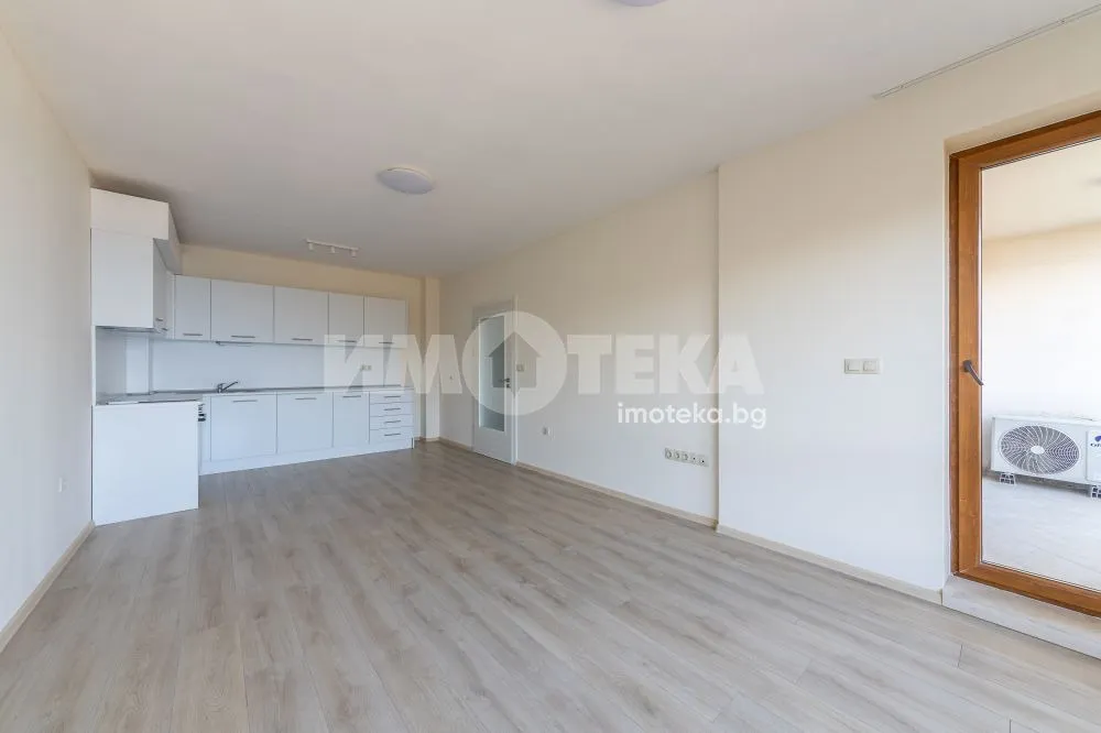 Прекрасен,панорамен, завършен до ключ апартамент, намиращ се в затворен комплекс, разположен на брега на морето. Апартаментът е с чиста площ от 58кв.м и се състои от просторна дневна, спалня, с излаз на тераса,санитарен възел. Апартаментът е завършен до ключ с подови настилки, интериорни врати, с обзаведена и оборудвана баня с тоалетна, вградена кухня с електро уреди.