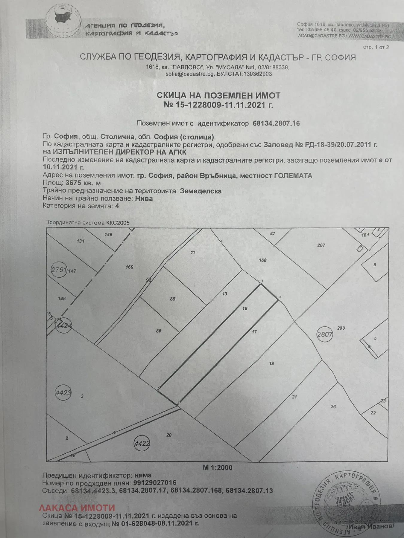 ЛАКАСА ИМОТИ продава поземлен имот в гр. София, район Връбница, местност ГОЛЕМАТА.