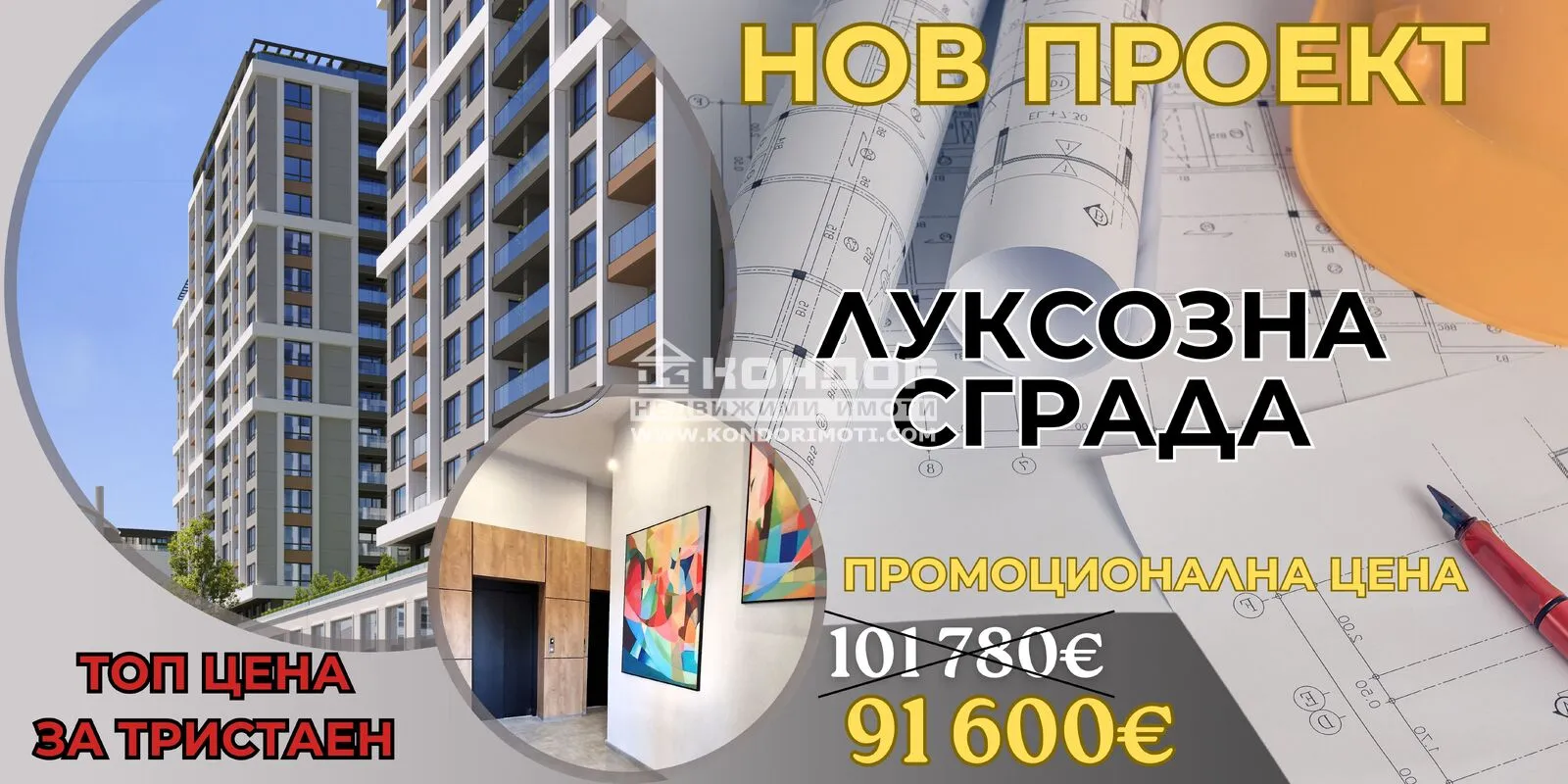 Оферта 66564 - Предлагаме Ви възможността да закупите тристаен апартамент с изложение ЮГ/ЗАПАД в новоизграждащ се луксозен жилищен комплекс с модерна визия, проектиран да създаде максимален комфорт на живущите в него. Tри хоризонтално разположени жилищни секции с елегантен силует готов да предложи комфорт и модерен начин на живот. Едно от основните му предимства е добрата локация, отлична комуникативност и динамична пътна инфраструктура, която осигурява бърз и лесен достъп до комплекса, от всяка точка на града. Той съчетава лукс, спокойствие и комфорт, с подсигурени паркоместа и гаражи. Жилището се състои от дневна с кухненска част, две самостоятелни спални, баня с тоалетна, втора тоалетна, входно антре, перално помещение и една тераса. Основната концепция при проектирането е да се постигнат просторни и функционални стаи, с цел да се създаде максимален уют на модерното семейство. Изключителна съвременна архитектура и модерна технология на строителство. Визията е иновативна, привличаща внимание с уникалността си. Всяко жилище ще разполага с пълно окабеляване – за домофон, интернет и кабелна телевизия, общите части са луксозно завършени, жилищата са с алуминиева дограма с троен стъклопакет от най-висок клас, масивна блиндирана входна врата. За удобство на живущите съществува възможността да закупят подземни паркоместа и гаражи с топла връзка към комплекса. Гъвкави схеми на разсрочено плащане спрямо възможностите на клиента в рамките на строителството или закупуване чрез Банков Кредит, на изключително изгодни условия за клиенти на агенцията!!! Приложените изображения са от завършени проекти на строителната фирма.