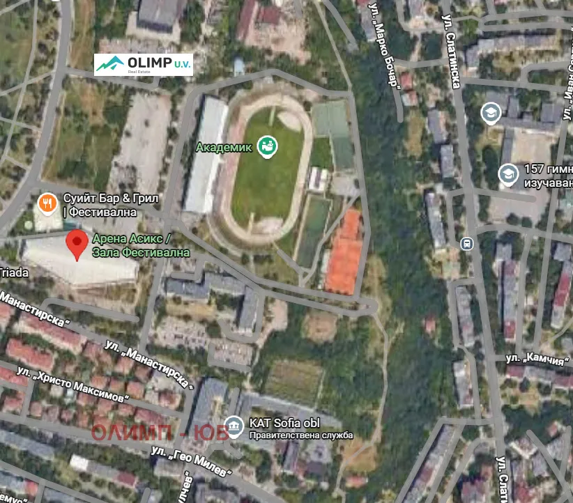 Парцелът се намира в района на Стадион Академик, в близост до ул. Гео Милев. Районът е добре развит и популярен със своята спортна насоченост и разнообразие от спортни съоръжения.