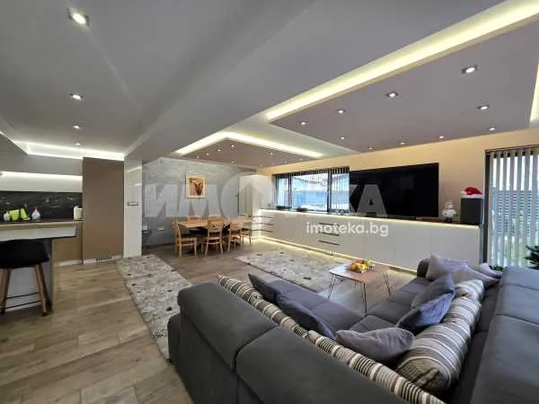 Луксозна самостоятелна къща с панорамни тераси и отделна къща за гости в полата на Витоша. Представяме Ви изключително функционален и просторен имот, разположен в един от най-предпочитаните и зелени райони на София – кв. Симеоново. Къщата предлага общо РЗП от 535 кв.м., отлично разпределени между основната жилищна част, просторните панорамни тераси и отделната къща за гости/тристаен апартамент. Къщата разполага с равен двор от 839 кв с 2 самостоятелни входа. Входа от към къщата за гости разполага с игрище с баскетболен кош, което може да се използва и за паркиране на 2 автомобила. На второ ниво на двора е изградена оранжерия за зеленчукова градина. Двата входа са снабдени с видеодомофони, които могат дистанционно да отварят входните врати към улицата. Къщата е снабдена с 8 обезопасителни камери по границите на целия имот, както и автономно осветление. Наличие на СОТ система за сигурност. ⸻ Основни характеристики на имота: • Общи параметри • РЗП: 535 кв.м. • Панорамни тераси: 126 кв.м. с уникални гледки към природен парк Витоша и панорама към град София • Парцел: тих, слънчев и равен, с удобен достъп по асфалт • Локация: престижен и спокоен район, в непосредствена близост до природата и същевременно с бърз достъп до Околовръстен път ⸻ Основна къща Основната част на имота е проектирана така, че да осигурява максимален комфорт, пространство и светлина. Разпределението позволява удобство както за ежедневно живеене, така и за посрещане на гости. Разпределение: Сутерен - Троен гараж с вход от асфалтирана улица, с топла връзка към жилищна част - Голяма хоби стая - Склад - Техническо помещение - Санитарен възел Първи етаж: - Просторна дневна с френски прозорци, която се състои от кухненска част с остров, трапезария, мека мебел, камина и библиотечна част, санитарен възел. Голяма витрина с отваряема част към отлично поддържан двор, както и отделен френски прозорец с излаз към заден уединен двор. Втори етаж: -Мастър спалня със собствен санитарен възел и тераса. -Втора просторна спалня -Трета просторна спалня - Санитарен възел - Панорамна тераса към природен парк Витоша Трети етаж: Самостоятелен офис/спалня с невероятни гледки. Отоплението е посредством газова инсталация. Към камината има изградени въздъховоди до спалните помещения за допълнителен комфорт и топлина плюс климатици в трите спални. Соларни панели за захранване с топла вода. ⸻ Къща за гости / Отделен тристаен апартамент - Едно от големите предимства на имота е напълно самостоятелната къща за гости или тристаен апартамент с площ 55 кв.м., разположен с отделен вход, който гарантира пълна независимост от основната къща. Подходящ е за: • настаняване на гости, • отделно жилище за член на семейството, • отдаване под наем (краткосрочно или дългосрочно), • офис или студио за работа. Разпределение: • Светла дневна зона с излаз на двора • Кухненски бокс • Две отделни спални • Санитарен възел • Самостоятелен вход и пълна автономност ⸻ Предимства на имота • Престижно и спокойно местоположение в полите на Витоша Наличие на малка частна детска градина срещу къщата На пешеходно разстояние до 64 ОУ кв. Симеоново На метри от Природен парк Витоша • Просторни панорамни тераси с изключителни гледки • Функционално разпределение и голяма площ • Отделна къща за гости/тристаен апартамент • Подходящ за голямо с