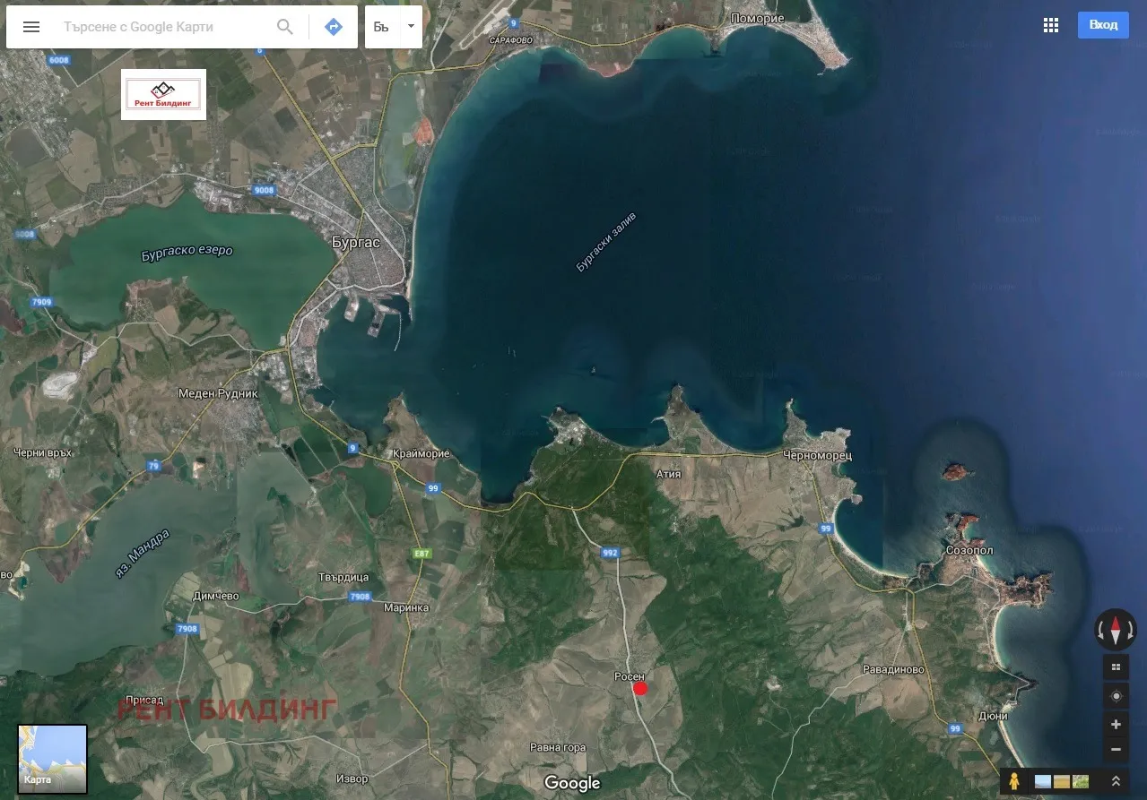 Предлагаме за продажба отличен парцел, с лице на новият път за южното Черноморие, в началото на с. Росен, общ. Созопол, за строителство на вилни сгради, комплекс от къщи, с красива гледка към Бакърлъка , само на 5 км. от плажа и рибарското селище Ченгене скеле, разстоянието до гр. Бургас е 18 км, до гр. Созопол 20 км, Площ на парцела 4300 кв.м., -, лице на асфалтов път 66 м.