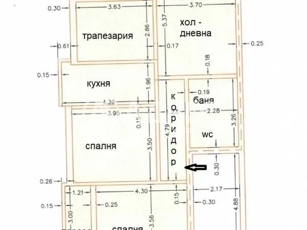 Апартамент с ТРИ СПАЛНИ в ЦЕНТЪРА на гр. Бургас. Жилищна кооперация от 80-те години.