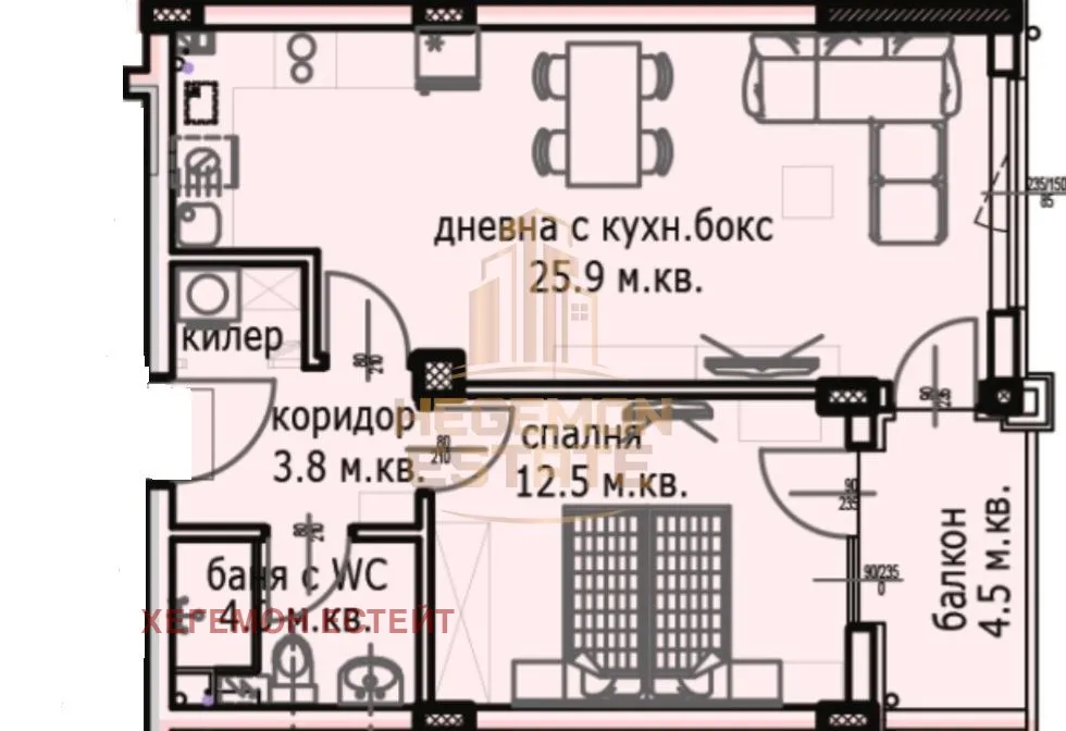 Всекидневна 25,9 кв.м., излаз на тераса;