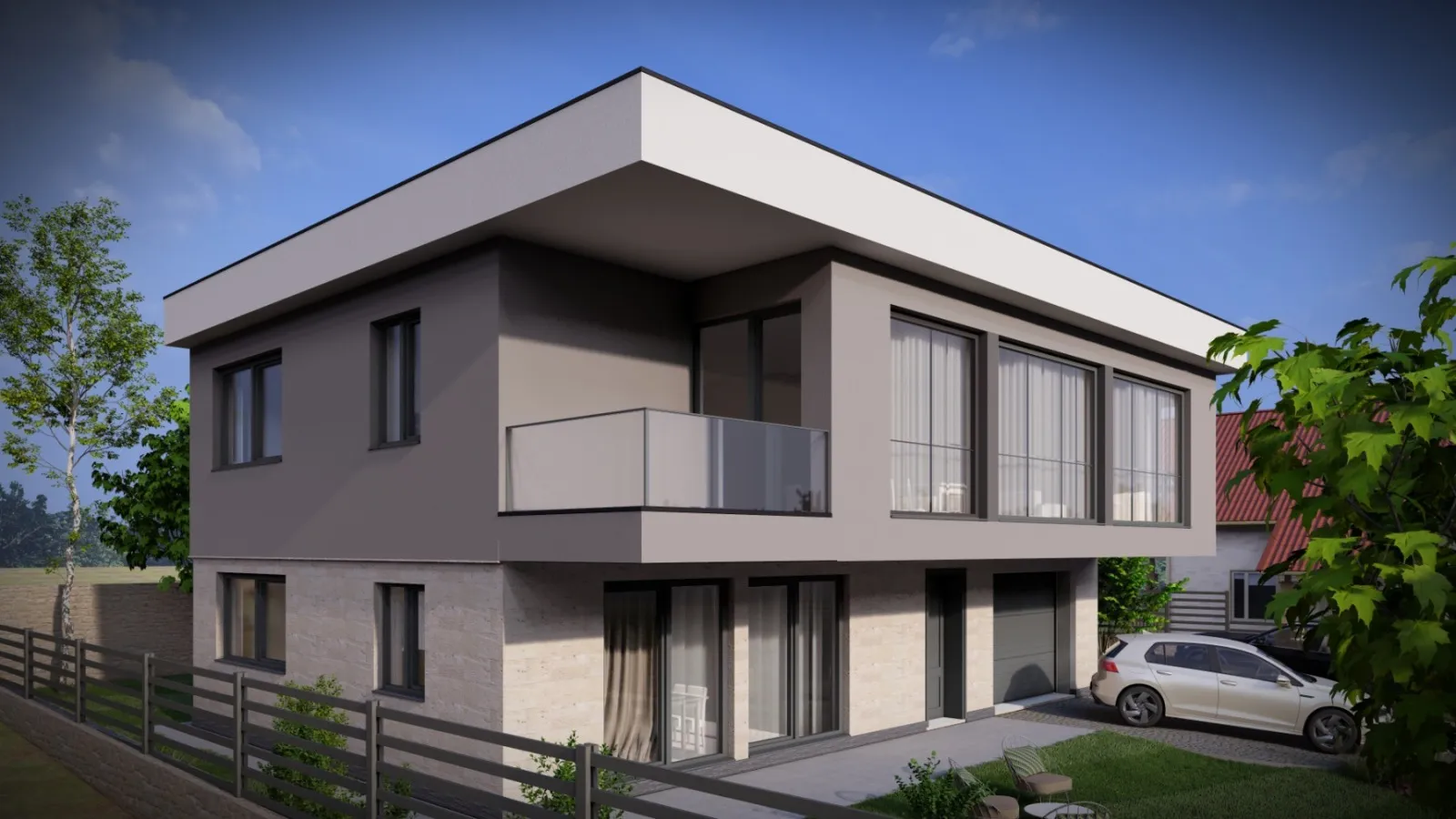 1ви етаж - Голяма Кухня , Спалня , Санитарно помещение , топла връзка към ГАРАЖА , Веранда .