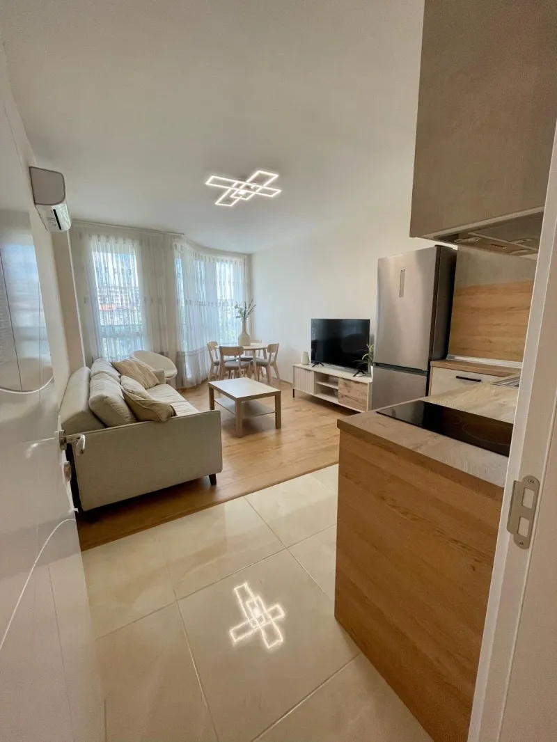 ЧИСТО НОВ ОБЗАВЕДЕН!!! АКТ 16!!!Агенция за недвижими имоти Имотен център Ви предлага чисто нов обзаведен тристаен апартамент в тихата и спокойна част на ж.к. Зона Б-18.Апартаментът е разположен на 6-ти етаж в нова сграда с АКТ 16 от началото на 2025 г.Разпределение: входно коридор, просторна дневна с кухненски бокс, две спални, баня с тоалетна, отделна тоалетна, тераса.Отопление-климатици.Възможност за покупка на гараж или паркомясто.Имотът се предлага напълно обзаведен с всичко необходимо за едно домакинство.Агенцията разполага и с други имоти както в сградата, така и в района!Локация: на пешеходно разстояние от 2 метростанция, спирки на градски транспорт, училище, детска градина, хипермаркети и магазини.За повече информация и организиране на оглед, не се колебайте да се свържете с нас на посочения телефон.Отговорен брокер-Дарин Кадифтев