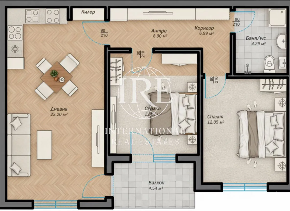 International Real Estates (IRE) представя:Тристаен апартамент в новострояща се сграда в района на Възраждане 3, град Варна. Имотът е на етап след Акт 14, като въвеждането в експлоатация (Акт 16) е предвидено за средата на 2026 г. Апартаментът се издава по БДС.Разпределение: Входно антре, всекидневна с кухненска част, две спални, балкон и общ санитарен възел.Характеристики и предимства:Площ: 70 кв.мЕтаж: 4 от 4Строителство: ТухлаОпция за завършване: Предлага се възможност за превръщане на имота в напълно завършен и обзаведен апартамент на цена от 155 400евро. Приложените снимки са примерни от друг обект на строителя, завършен по същия стандарт, с цел да онагледят визията при избор на тази опция.За повече информация и организиране на оглед, моля свържете се с нас на посочения телефон и цитирайте код на обявата: Z-742International Real Estates предлага пълно съдействие при покупка, включително безплатна консултация и подкрепа при банково кредитиране – избор на най-добри условия и съдействие до финализиране на сделката. Венцислав Мирчев Експерт недвижими имоти "International Real Estates" Ltd. Phone: +359879234888 Email: v.mirchev@internationalrealestates.com Web: www.internationalrealestates.com Address: бул."Ян Хунияди" 31, ет. 2, оф. 1, гр. Варна