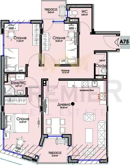 Имоти Премиер Ви предлага Четиристаен апартамент A75 в жилищен комплекс „Скарабей Тортуга“📍 Локация: кв. Хоризонт, гр. Бургас 💶 Цена: 179 314 € 📐 Площ: 128.08 m² 🛏️ Тип: Четиристаен апартамент 📅 Статус: Свободен 🌇 Изложение: Запад 🧱 Степен на завършеност: По БДСПредставяме Ви Апартамент A75 – изключително просторен и добре проектиран четиристаен апартамент, част от съвременния жилищен комплекс "Скарабей Тортуга", разположен в спокоен и комуникативен район – кв. Хоризонт, гр. Бургас.Имотът се отличава с голяма дневна зона, три самостоятелни спални, две тераси, две санитарни помещения и склад. Функционално разпределен и ориентиран на запад, осигурява уют и светлина в следобедните часове. Издава се по БДС (на шпакловка и замазка) – идеален за довършване според личния вкус.Възможност за покупка на паркомясто или гараж към апартамента.🏠 Разпределение:Дневна с кухненски бокс – 30.32 m²Спалня 1 – 14.04 m²Спалня 2 – 11.35 m²Спалня 3 – 10.35 m²Баня с тоалетна – 3.07 m²Отделна тоалетна (WC) – 3.00 m²Коридор – 13.74 m²Склад – 1.86 m²Тераса 1 – 4.18 m²Тераса 2 – 3.00 m²Комплексът предлага висок стандарт на строителство, модерна архитектура, отлична инфраструктура и зелени площи. Перфектен избор за семейно жилище или дългосрочна инвестиция.📞 За повече информация и огледи: Свържете се с нас още днес! 📌 Код на офертата: Z-370472