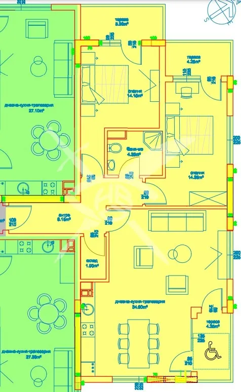 РАЗПРЕДЕЛЕНИЕ: Жилището разполага с площ 121,50 кв.м., състои се от хол с кухня, спалня и баня с тоалетна.