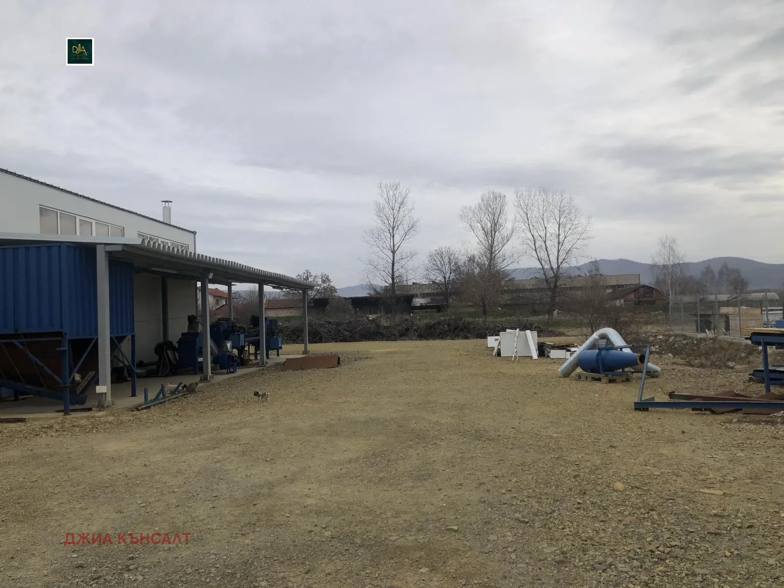 Имотът включва производствено хале с височина, подходяща за тежки машини, оборудвана линия за производство на пелети, както и собствен двор с достатъчно пространство за съхранение на суровини и готова продукция, товаро-разтоварни дейности и логистика.