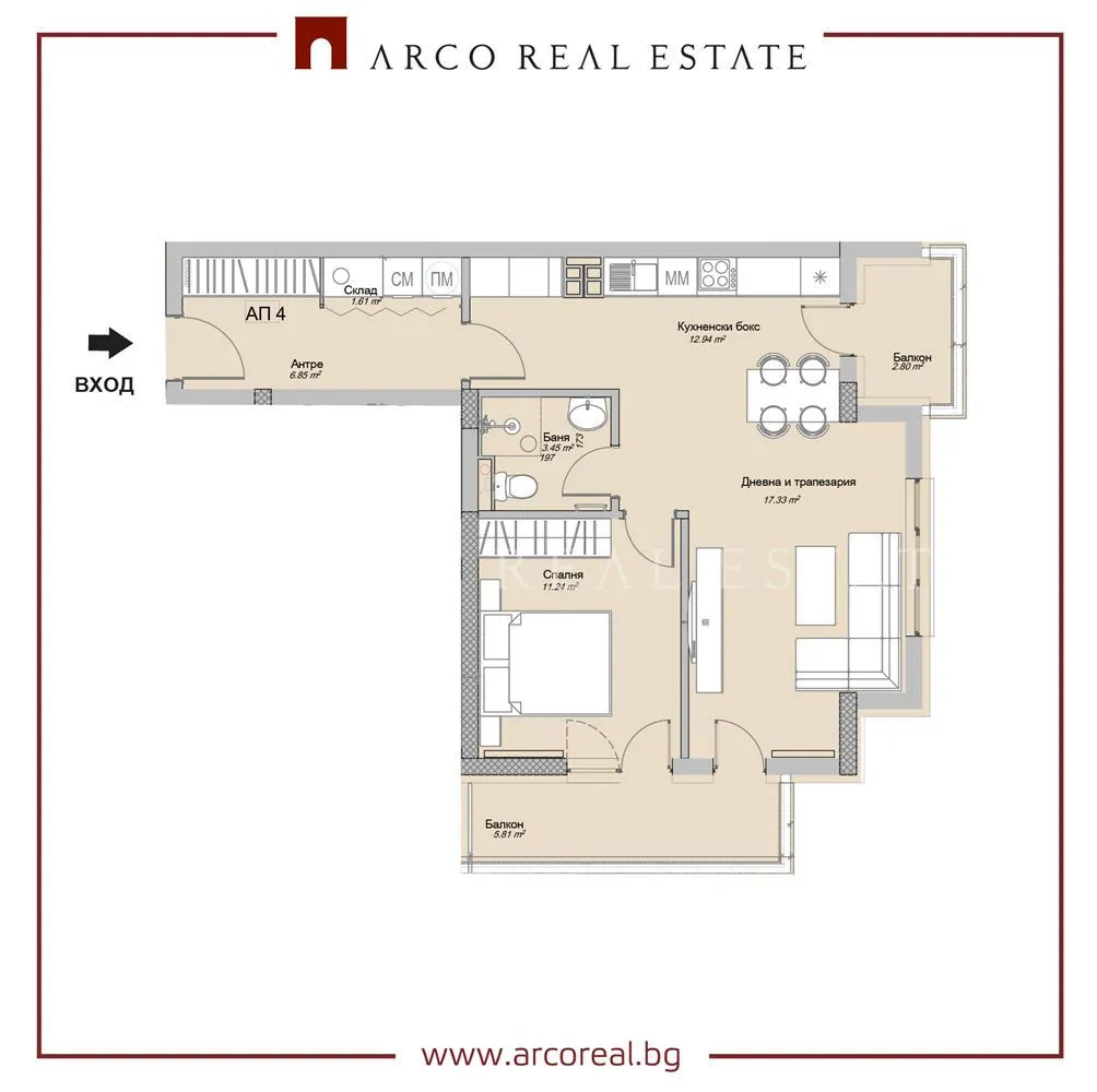 ARCO REAL ESTATE представя: БЕЗ КОМИСИОННА ЗА КУПУВАЧ!Последните останали апартаменти в сграда пред АКТ 14. В кв.Слатина до бъдеща метростанция.Апартамент 12 - Двустаен, южен е със застроена площ 73.42 кв.м. на ет.2нп.Разпределение: Входно антре, дневна с кухненски бокс и балкон, спалня с тераса, баня с тоалетна, склад.Завършване на шпакловка и замазка, входна блиндирана врата.Сградата ще бъде на 6 етажа - в Сутерен - паркоместа, на пратер - гаражи, в двор - паркоместа. на типов етаж - 8 апартамента, от които 2 едностайни, 5 двустайни и 1 тристаен.Изпълнение с качествени материали. Строител с имe на пазара.Местоположение: Район Слатина е разположен в източната част на Столицата на площ от 1325,2 х.а., което представлява 6.69 % от територията на Столична община.Бързо развиващ се с нови сгради. Тих и зелен район с много паркове и детски площадни.Комуникация - очаква се станция на метро.Агенцията предоставя безплатно съдействие за ипотечно кредитиране.За повече информация Йоланта Бикова 0895664570, оферта № 106050e-mail:Yolanta.petrova@arcoreal.bgИмейл yolanta.petrova@arcoreal.bgТелефон 0895 664 570