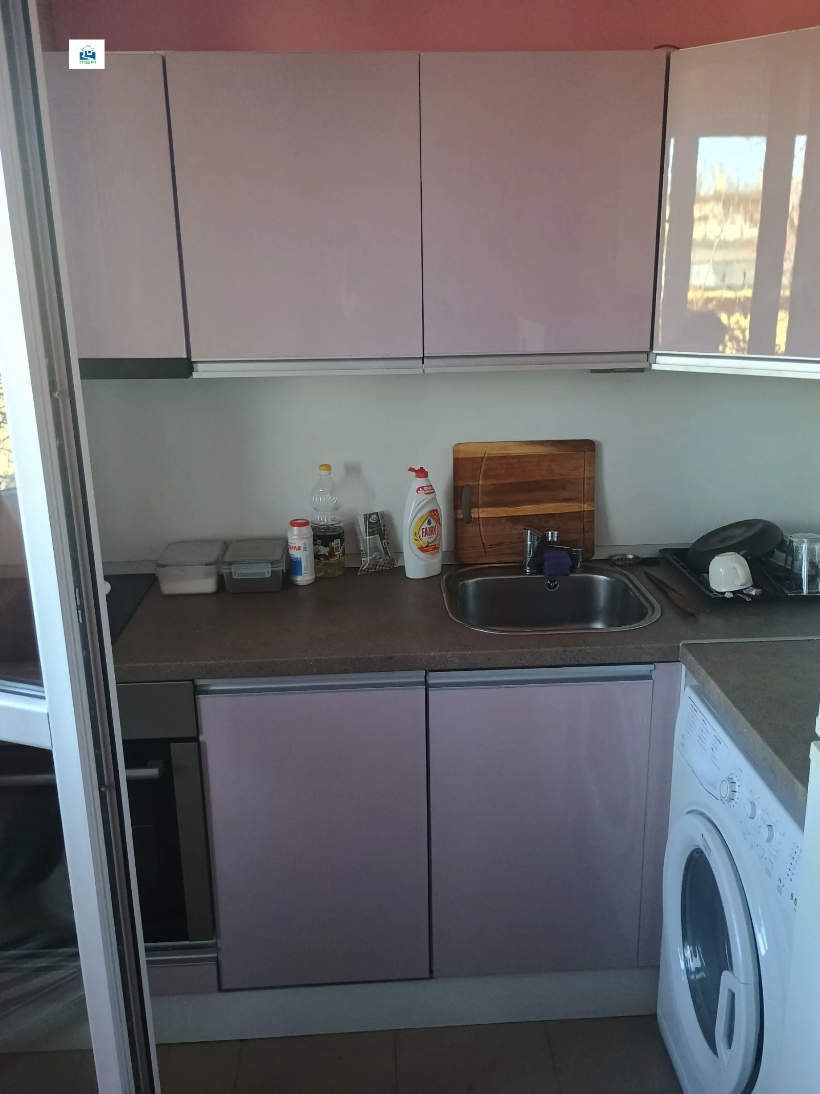 6. Подови настилки: ламинат в стаите и керамични плочки в сервизното помещение, кухнята и балкона.