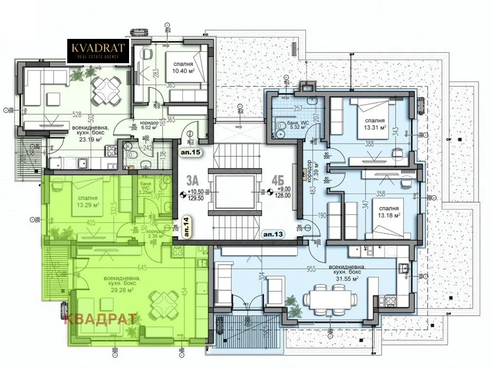 Етаж: 4-ти от 5, с достъп чрез безшумен асансьор.