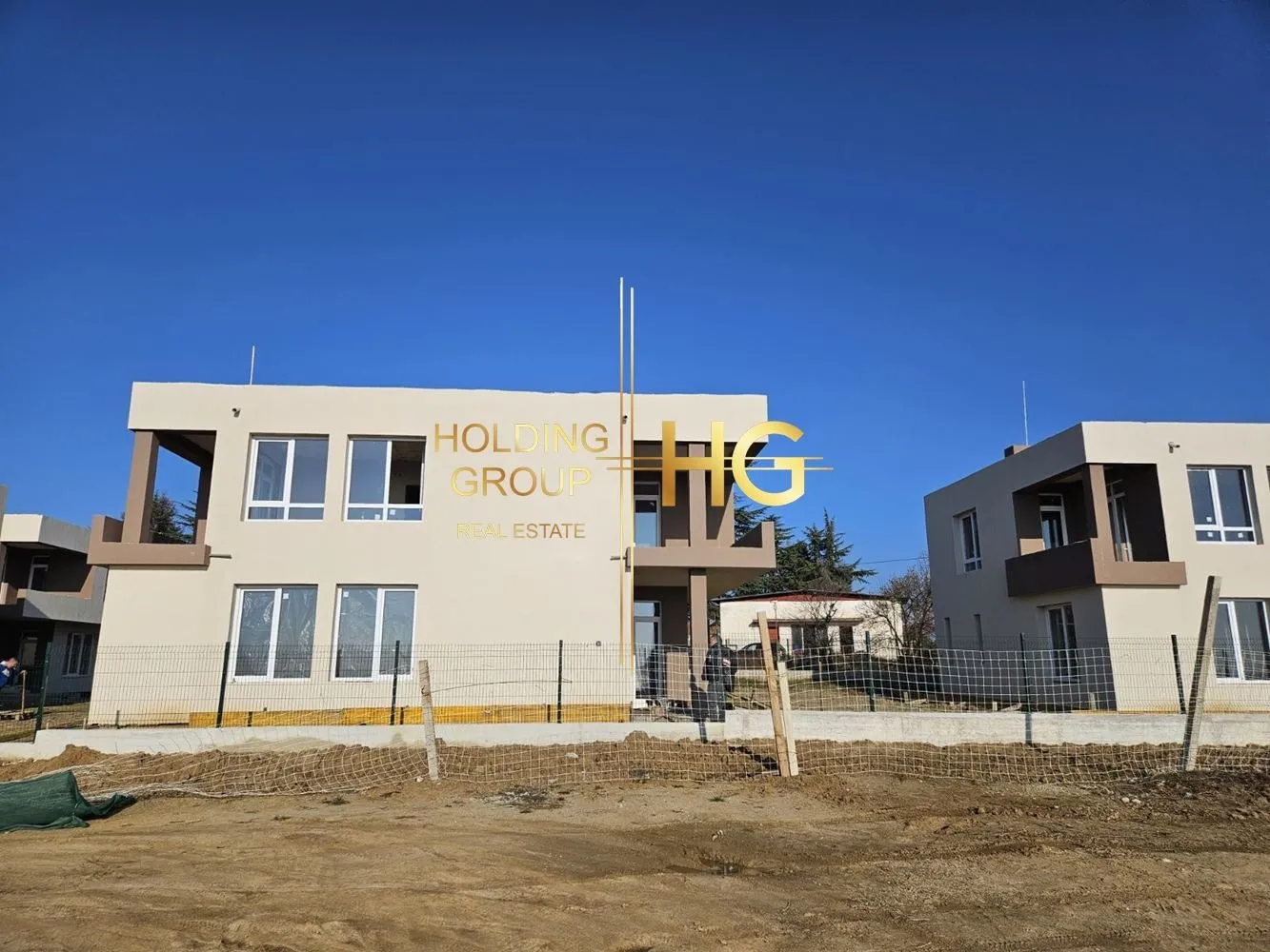 HOLDING GROUP real estate представя на Вашето внимание новострояща се къща в м-ст Боровец Юг. Върху парцел с площ от 500 кв.м. се изгражда този чудесен дом с разгъната застроена площ от 200 кв.м. Ситуиран е на два етажа със следното разпределение: На първи етаж - антре, килер, сервизно помещение, просторен дневен тракт / 56,50 кв.м./ с кухненска част / 17,60 кв.м./ с излаз на веранда / 14 кв.м./. По вътрешни стълби се стига до етаж две, където са разположени коридор, три просторни спални / едната със собствен санитарен възел/ с излаз на балкон, кабинет и баня с тоалетна. Къщата е част от комплекс, състоящ се от шест идентични къщи, всяка със собствен двор и паркомясто. Ще бъде изградена обща септична яма с пречиствателна станция. Красива морска панорама. Без такса поддръжка. Възможност за избор на къща. На 150 м от главен път, автобусна спирка, магазини...