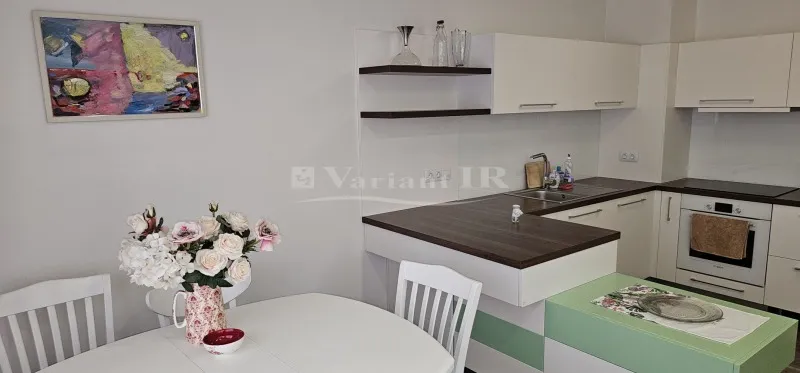 Елегантен дизайнерски апартамент с ново обзавеждане и оборудване. Състои се от просторен хол, две големи спални, баня и тоалетна, три балкона. Напълно готов за живеене. Площ на апартамента 98,94 кв.м., общи частни на сградата 5%. Изба 3,5 кв.м.