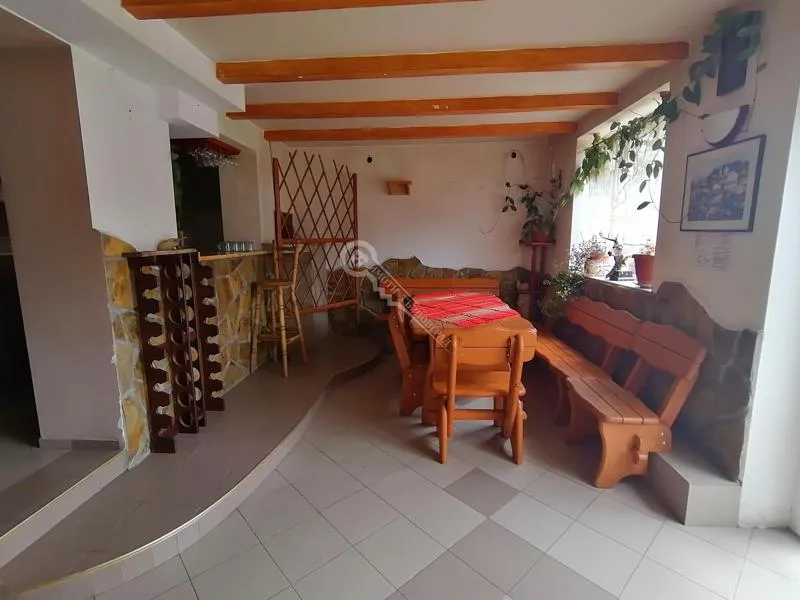 НАМАЛЕНА ЦЕНА!!! Имоти Търновград Ви предлага имот в близост до гр. Елена. Първият етаж се състои от оборудвана механа, санитарен възел, кухня, съблекалня и складово помещение. Вторият етаж се състои от лоби бар, перално помещение ,санитарен възел и рецепция. Третия и четвъртия етаж са идентични и се състоят от четири стаи, разполагащи със собствен санитарен възел. Петият етаж се състои от пет стаи със собствени санитарни възли. Имотът се продава със обзавеждането. Номер на офертата Z-2881 http://imotitarnovgrad.com/