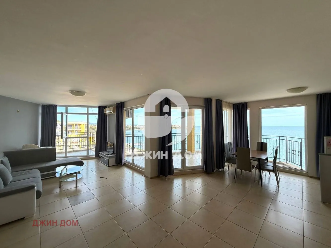 Апартаментът се състои от: просторен хол с кухненски кът и трапезария, две спални, санитарен възел, просторна тераса с ПАНОРАМЕН ИЗГЛЕД КЪМ МОРЕТО.