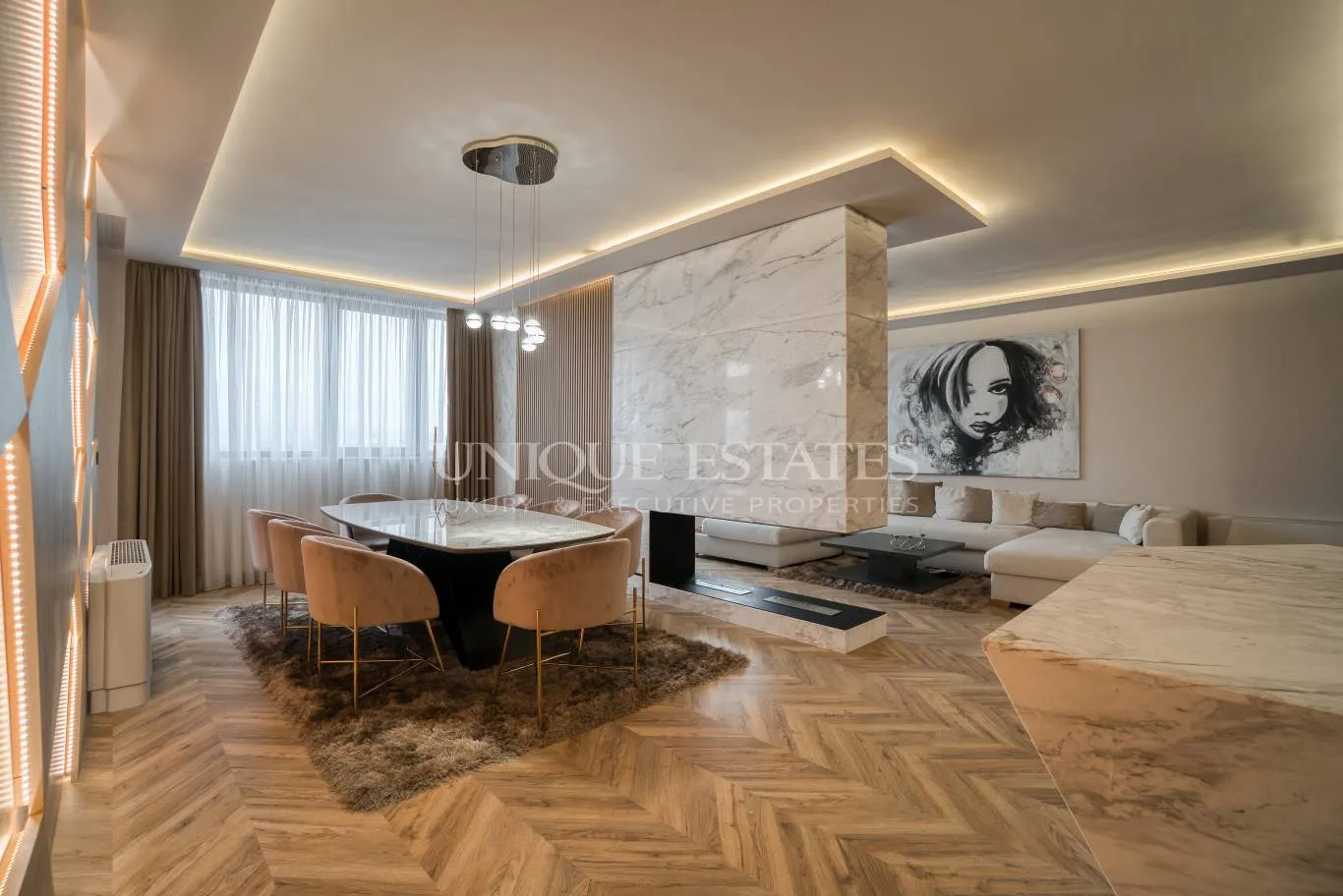 Unique Estates предлага за продажба един красив панорамен апартамент, обзаведен с много вкус и усет към детайла. Апартаментът е разположен на 8-ми етаж в комплекс RUHouse - удостоен с награда сграда на годината за 2019. В района има модерно ново строителство.